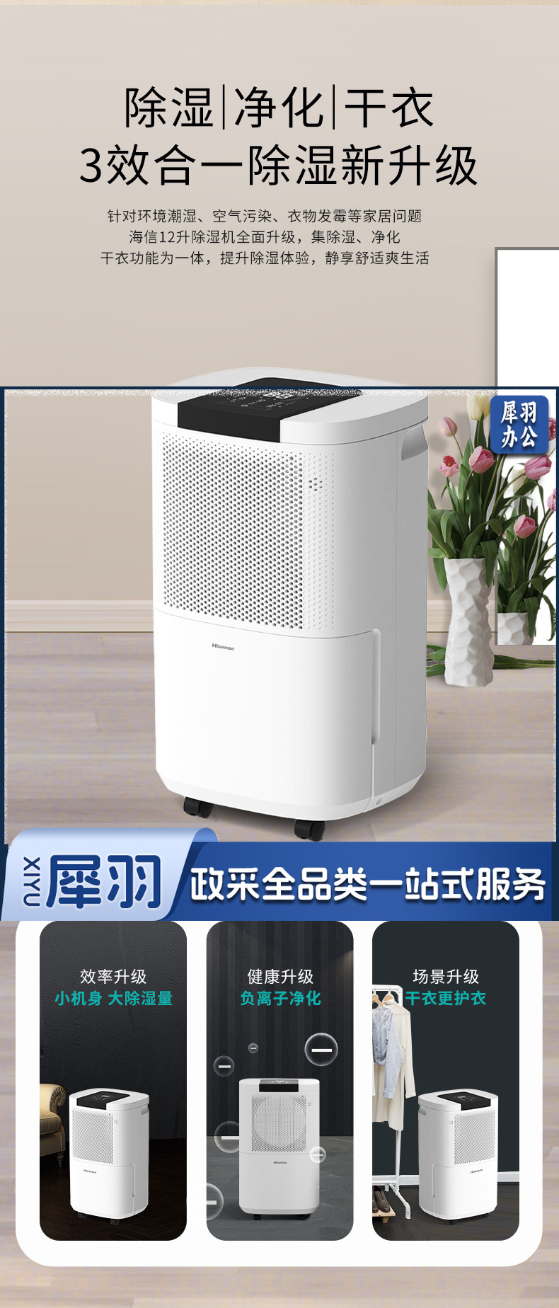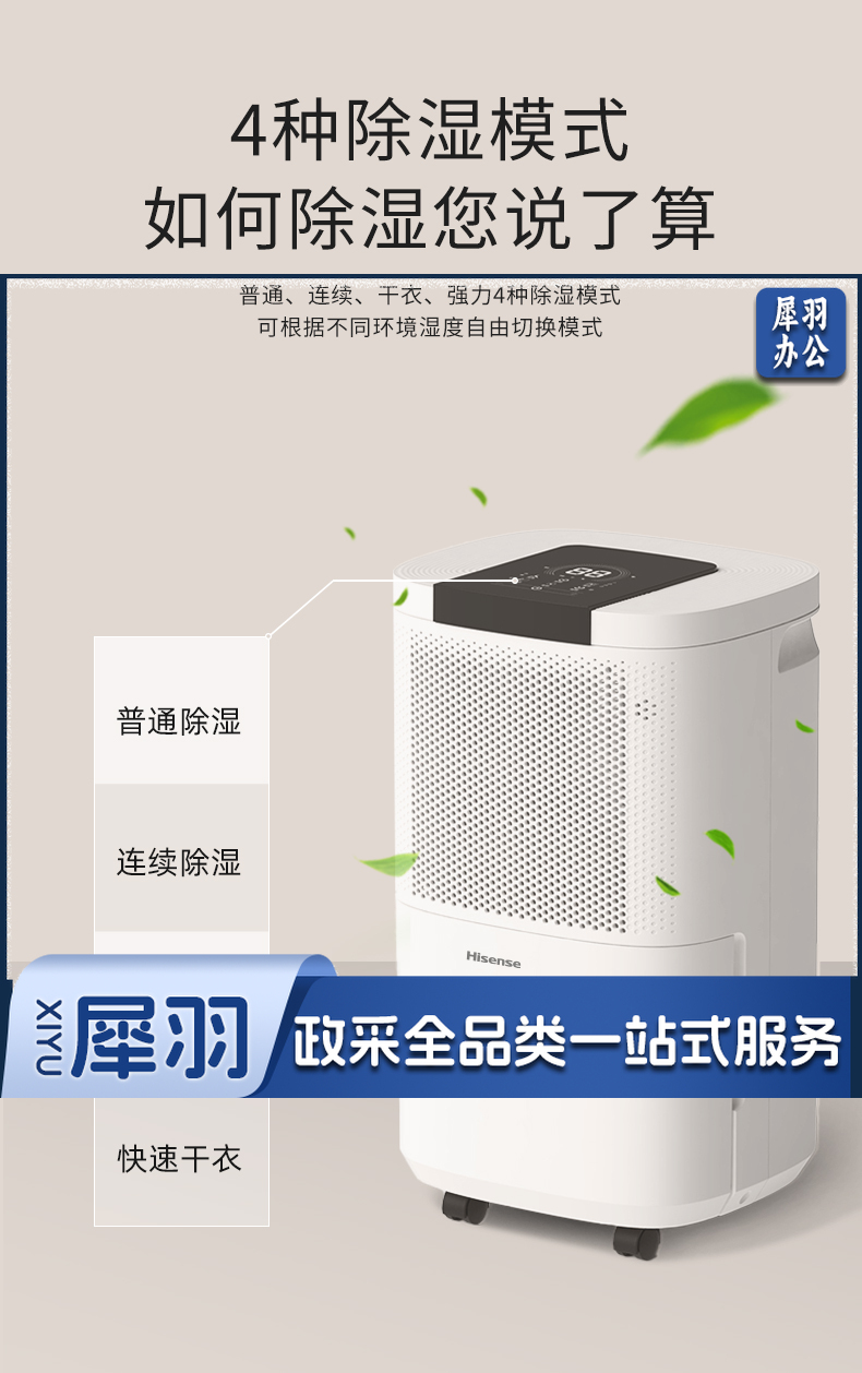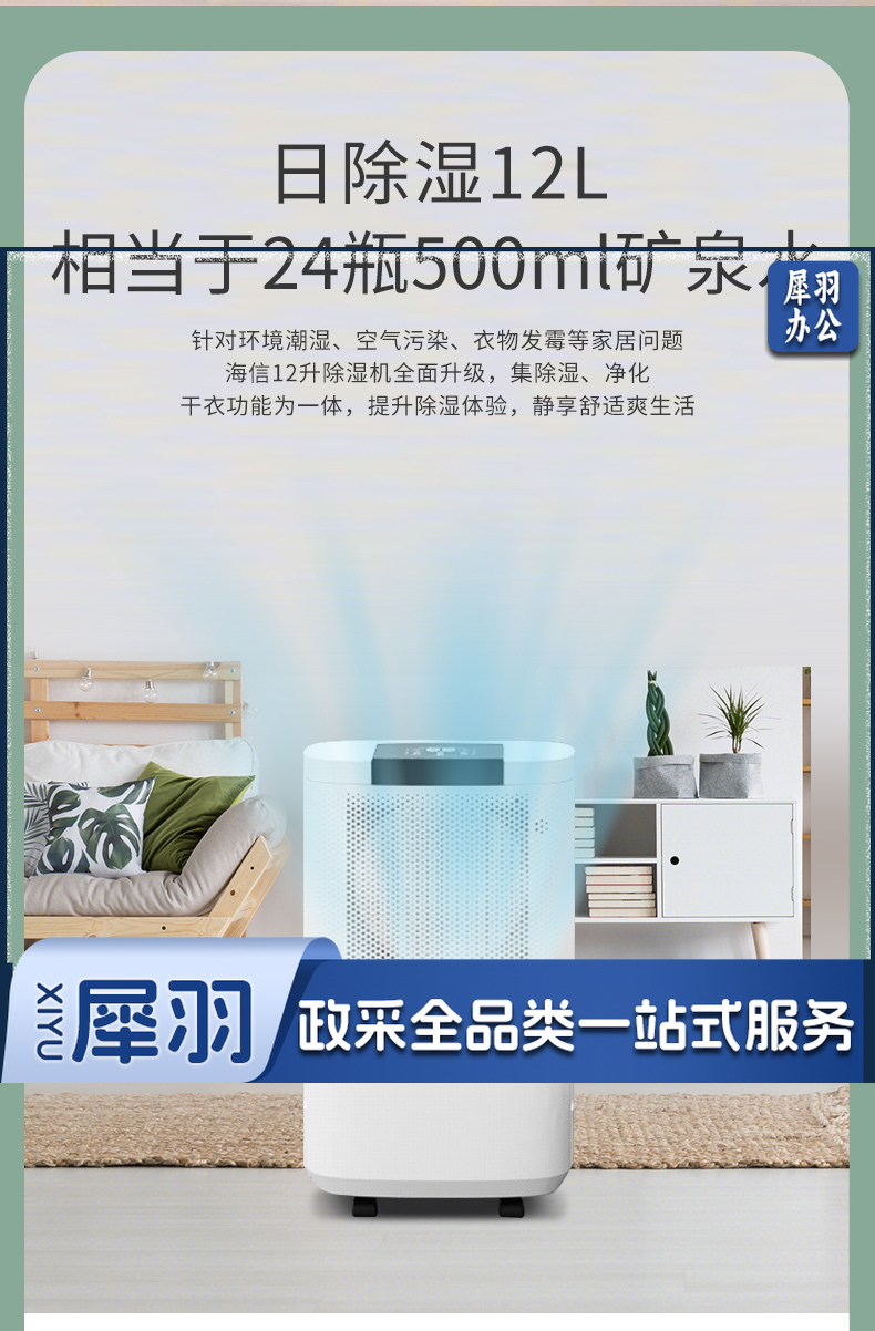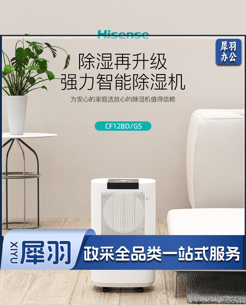 海信(Hisense) 除湿机抽湿机除湿器12升 适用20-60平米家用轻音除湿器抽湿器负离子净化 大屏触控 CF12BD/GS