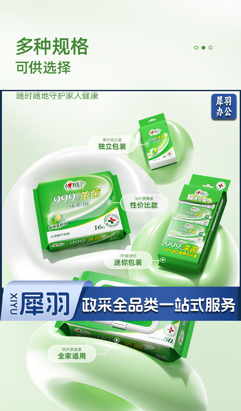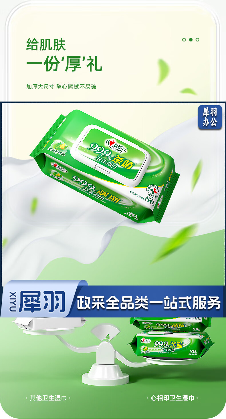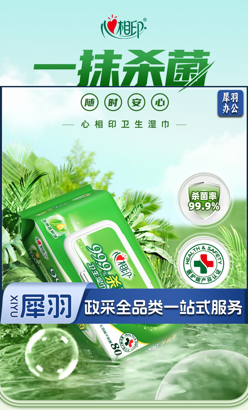 心相印杀菌湿巾80抽*3包 带盖抽取湿纸巾