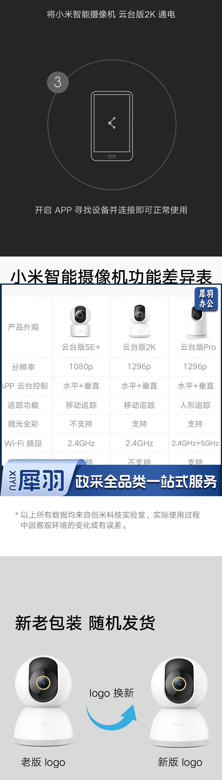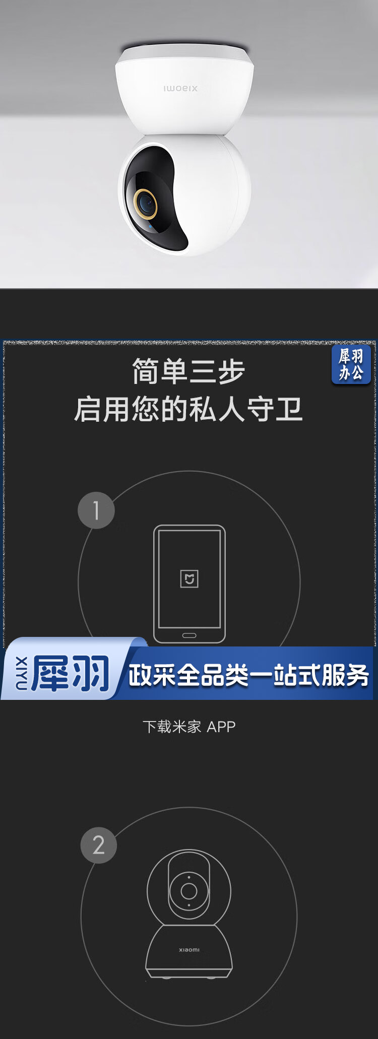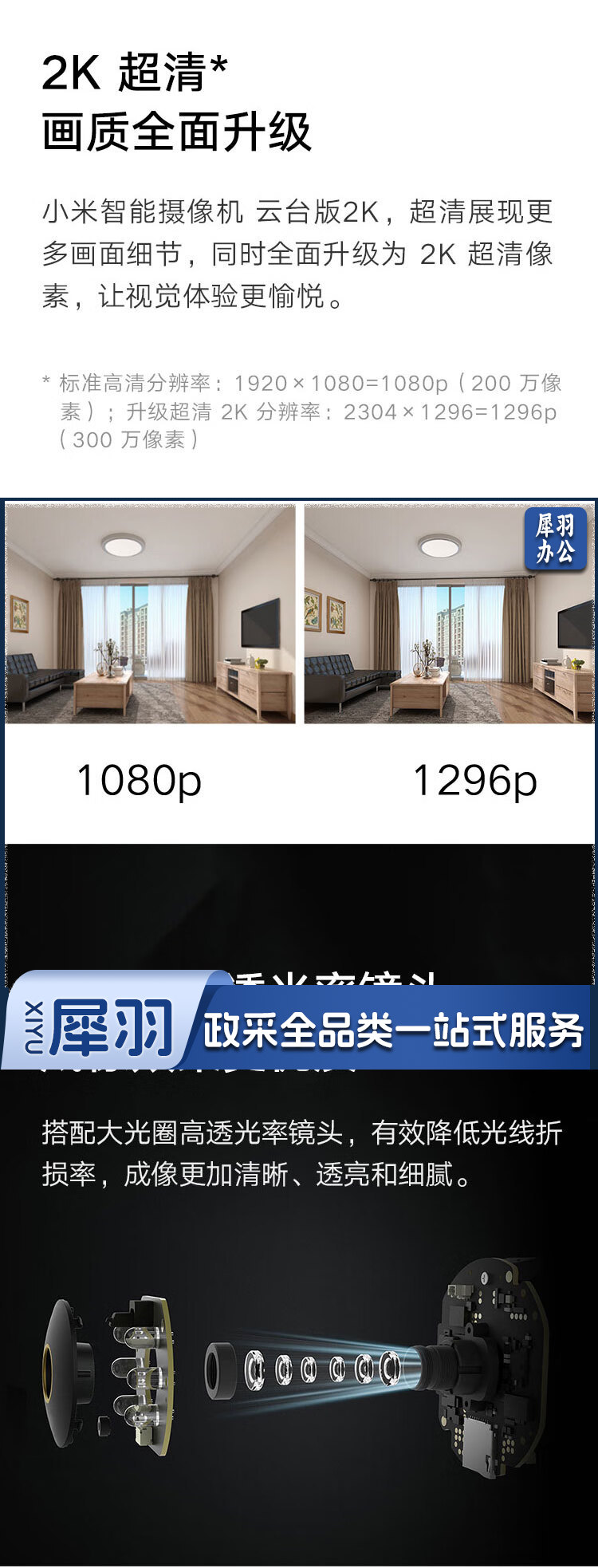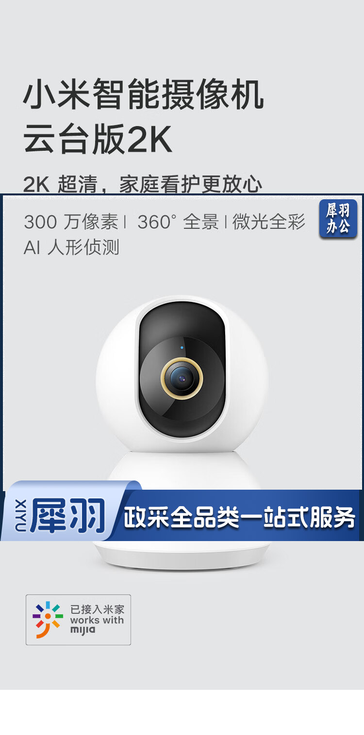小米摄像头 云台2K版 家用监控器 红外夜视 看家 2K超高清 手机查看 智能摄像机 300W像素升级版