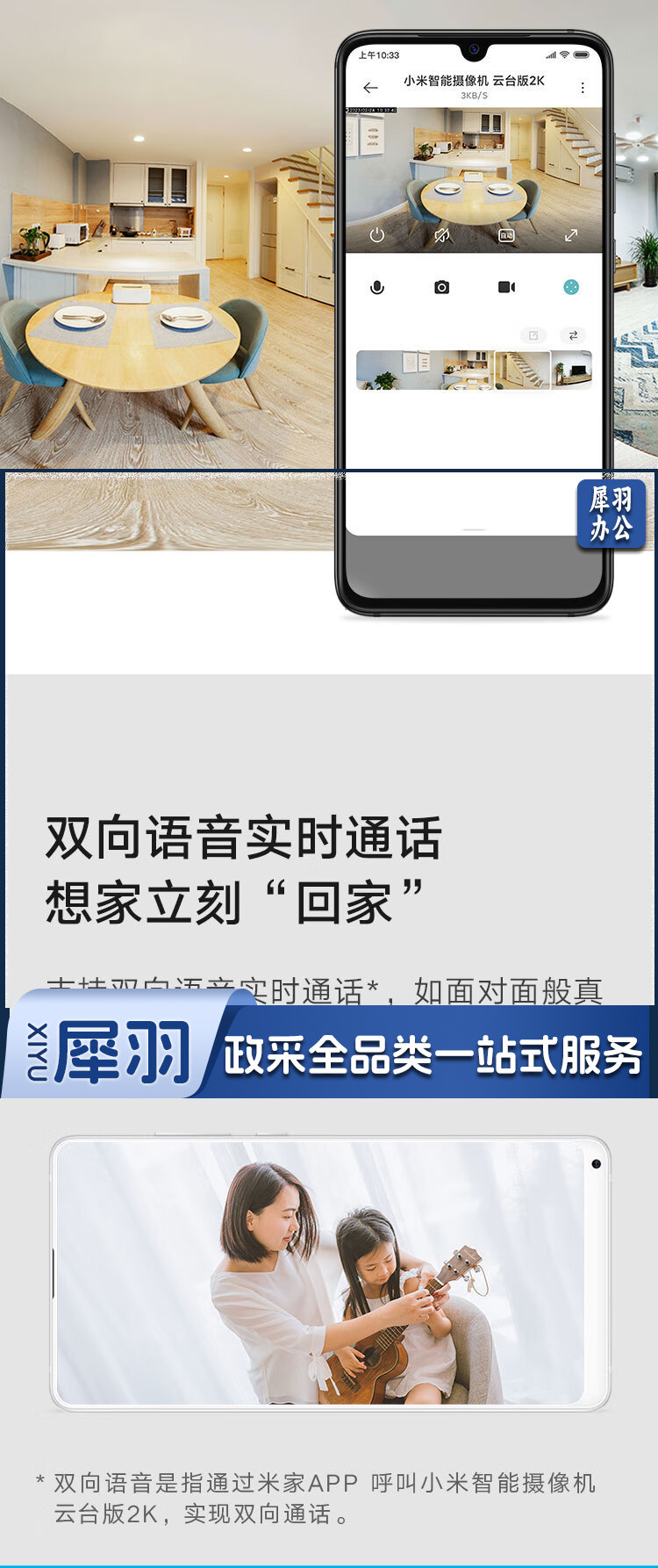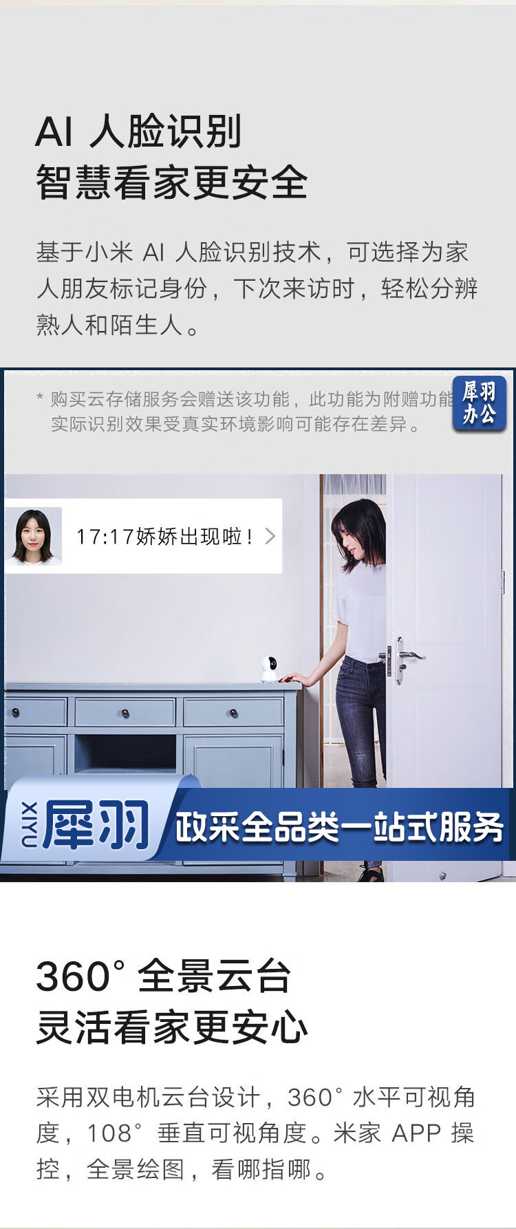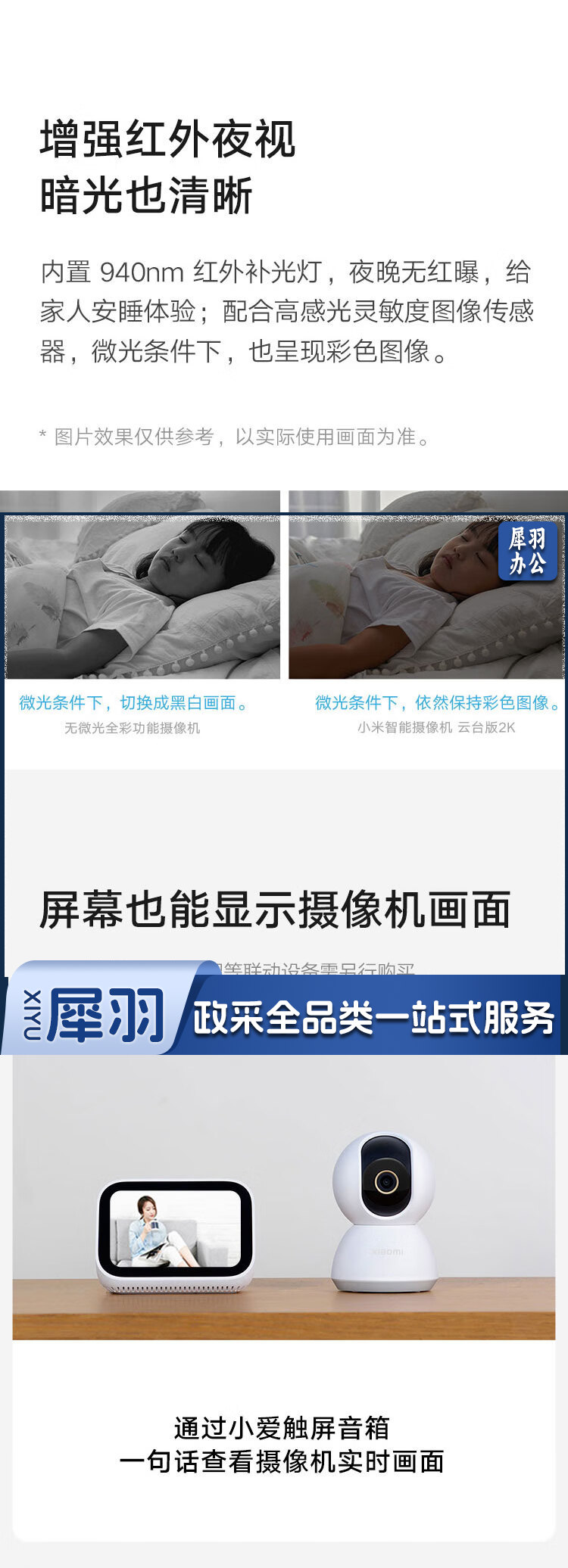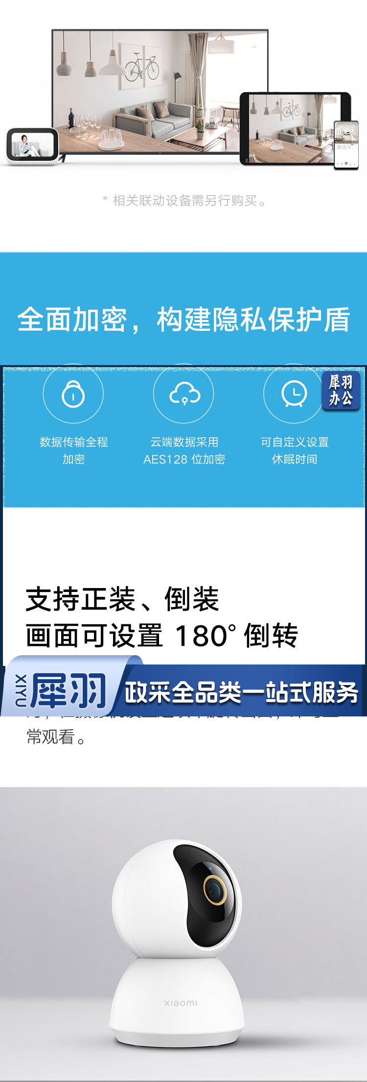 小米摄像头 云台2K版 家用监控器 红外夜视 看家 2K超高清 手机查看 智能摄像机 300W像素升级版