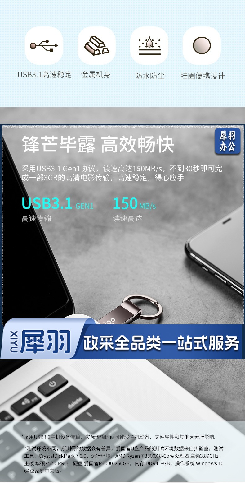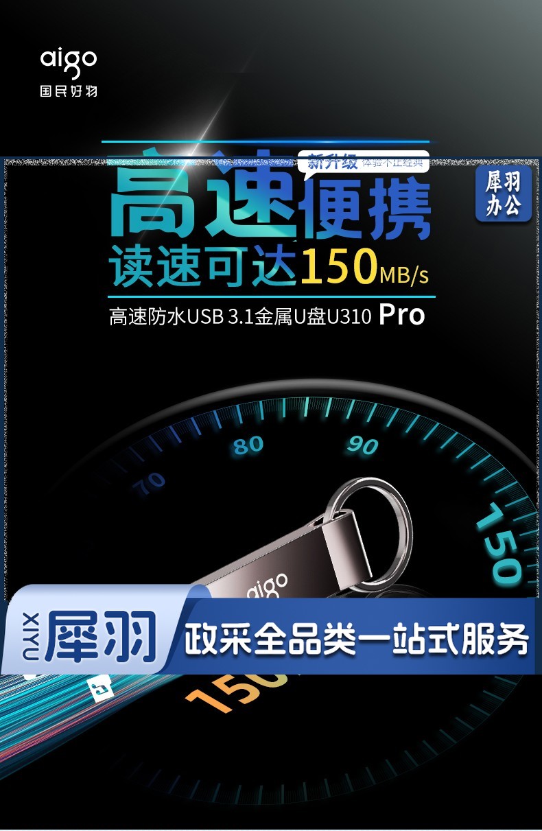 爱国者(aigo)128GB USB3.1 高速读写U盘 U310 Pro 金属U盘 读速150MB/s 防尘防水