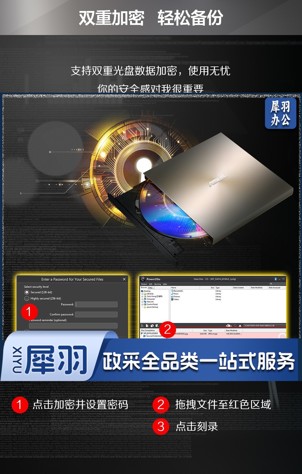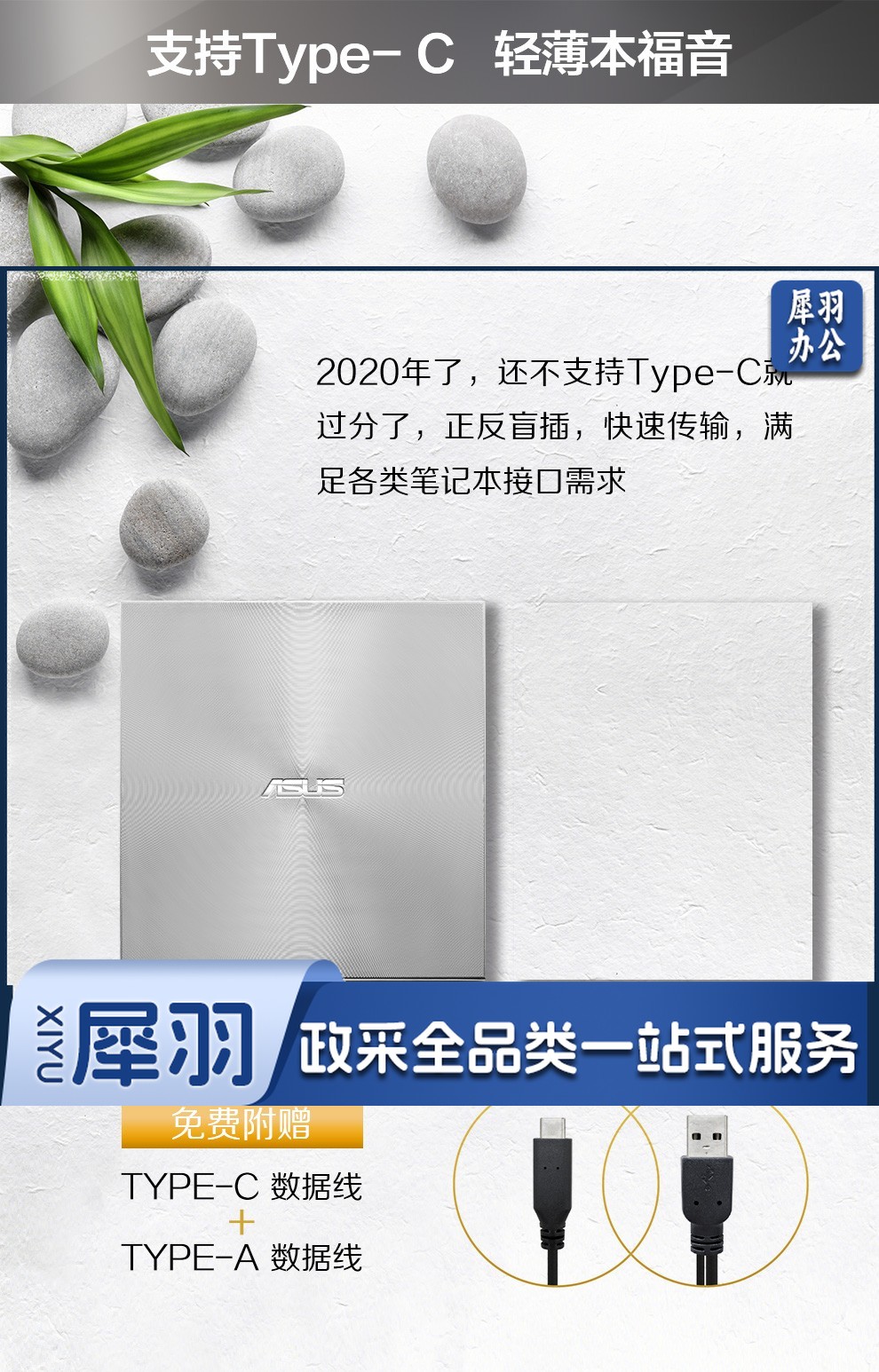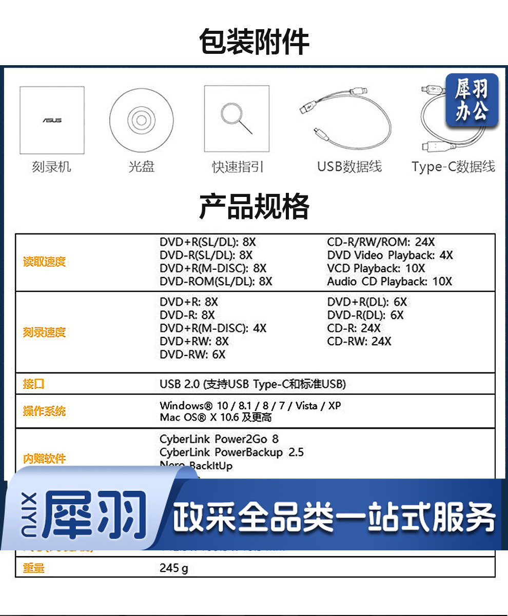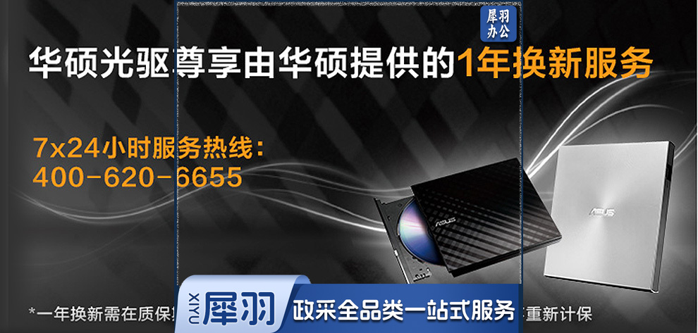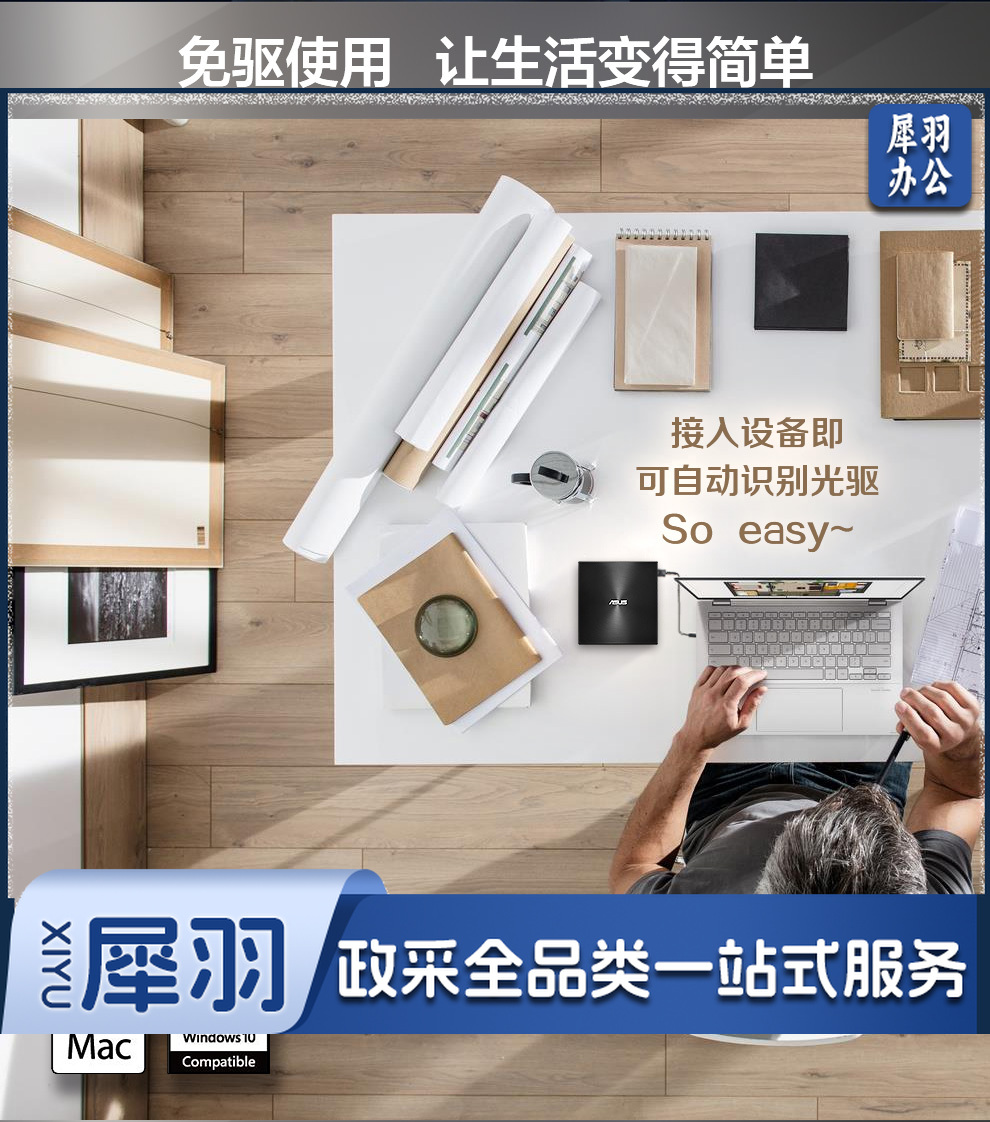 华硕(ASUS) 8倍速 外置DVD刻录机 移动光驱 支持USB/Type-C接口 (兼容苹果系统/SDRW-08U9M-U)-黑色