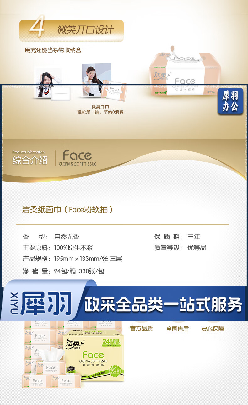 洁柔抽纸 柔韧330张面巾纸*24包 粉Face (M号 可湿水3层110抽每包)