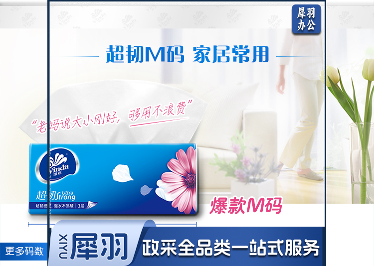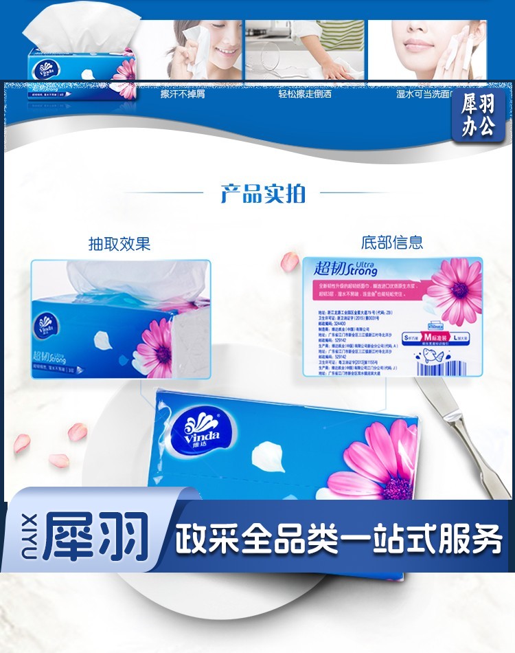 维达(Vinda)抽纸 超韧(130+20)抽*24包M码 湿水不易破 卫生纸 纸巾 整箱