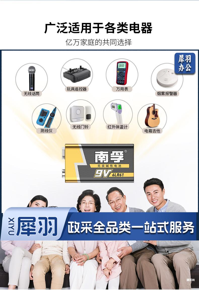 南孚(NANFU)9V碱性电池1粒装 9v 适用于遥控玩具/烟雾报警器/无线麦克风/万用表/话筒/遥控器等 6LR61