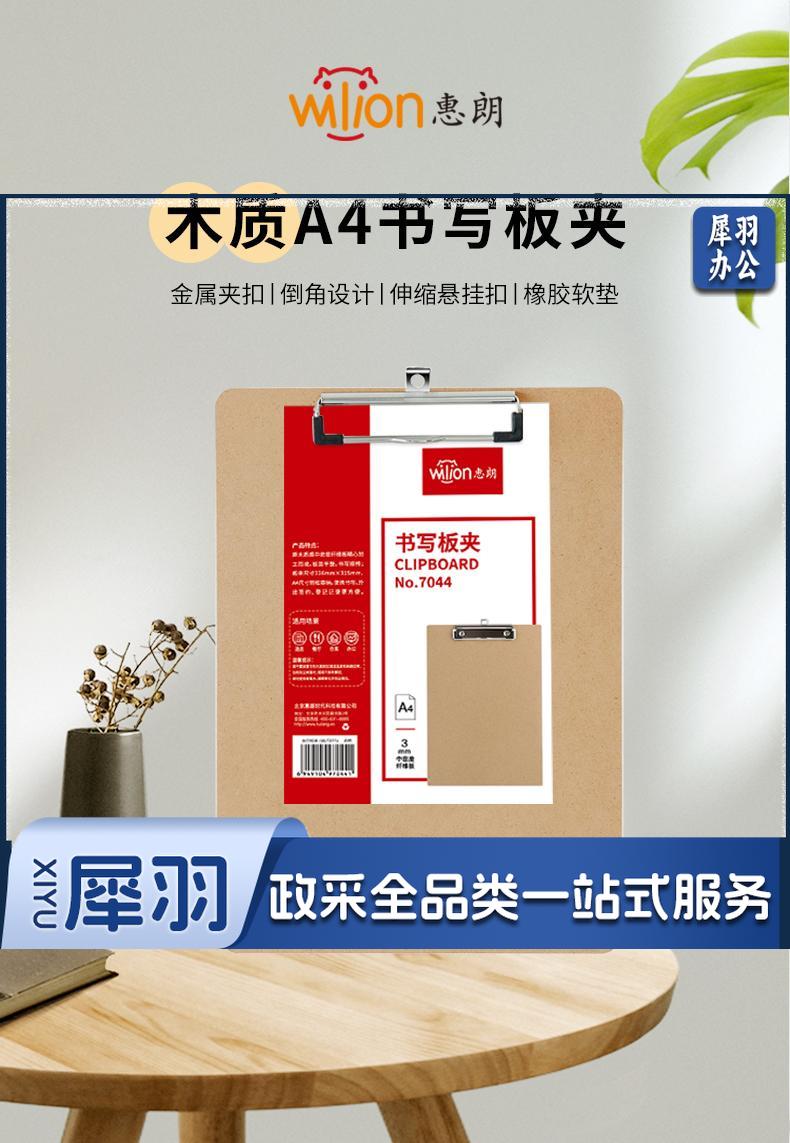 惠朗(huilang)A4原木质感金属强力夹书写板夹文件夹棕色 7044