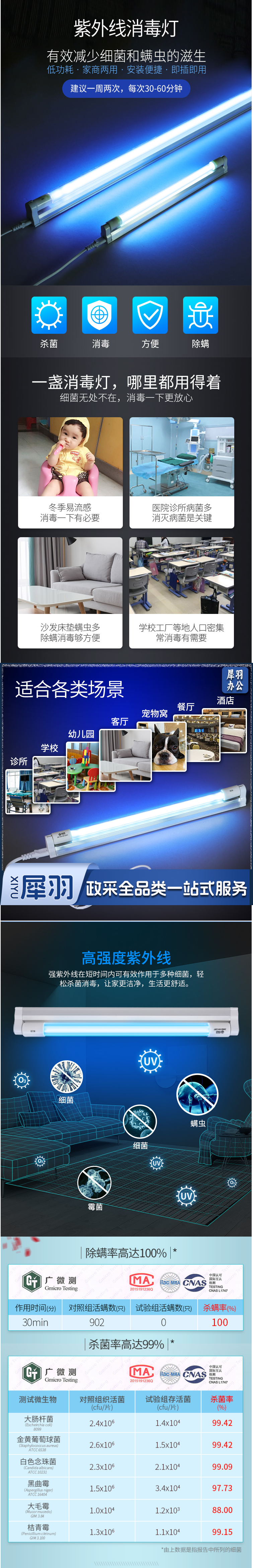 雪莱特(Cnlight) 家用紫外线消毒灯 杀菌除螨灯 室内紫外线灯 UV长条灯管 30W支架灯 无臭氧