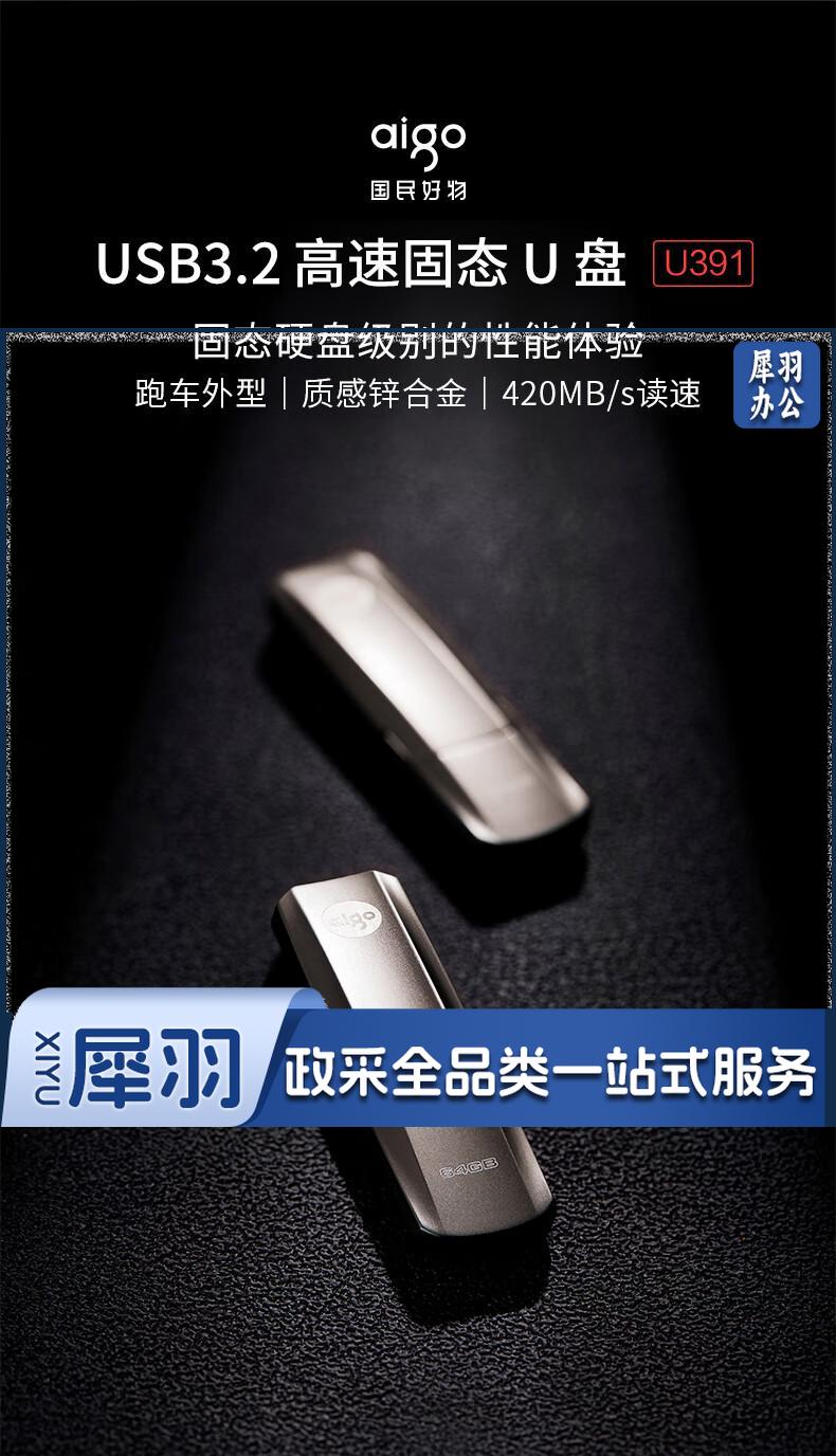 爱国者(aigo)128GB USB3.2 超极速固态U盘 U391 金属U盘 读速420MB/s 速度狂飙移动固态盘固态U盘|读速420MBs|128GB