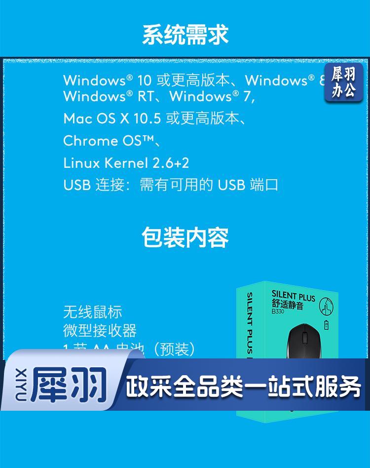 罗技(Logitech)B330 无线轻音鼠标 黑色