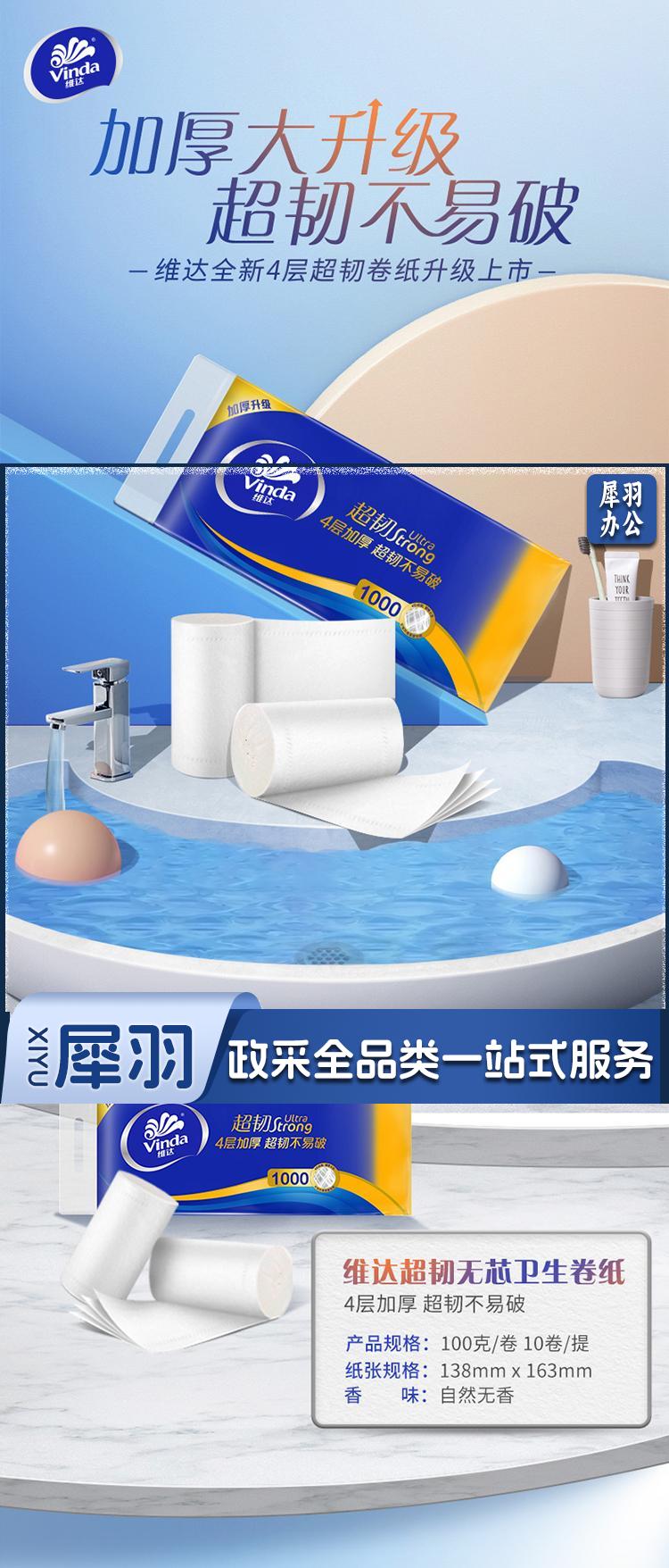 维达(Vinda) 无芯卷纸 超韧4层100g卫生纸*10卷 母婴可用(新旧交替发货)