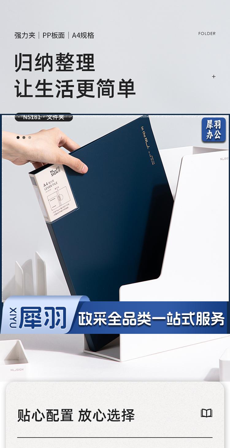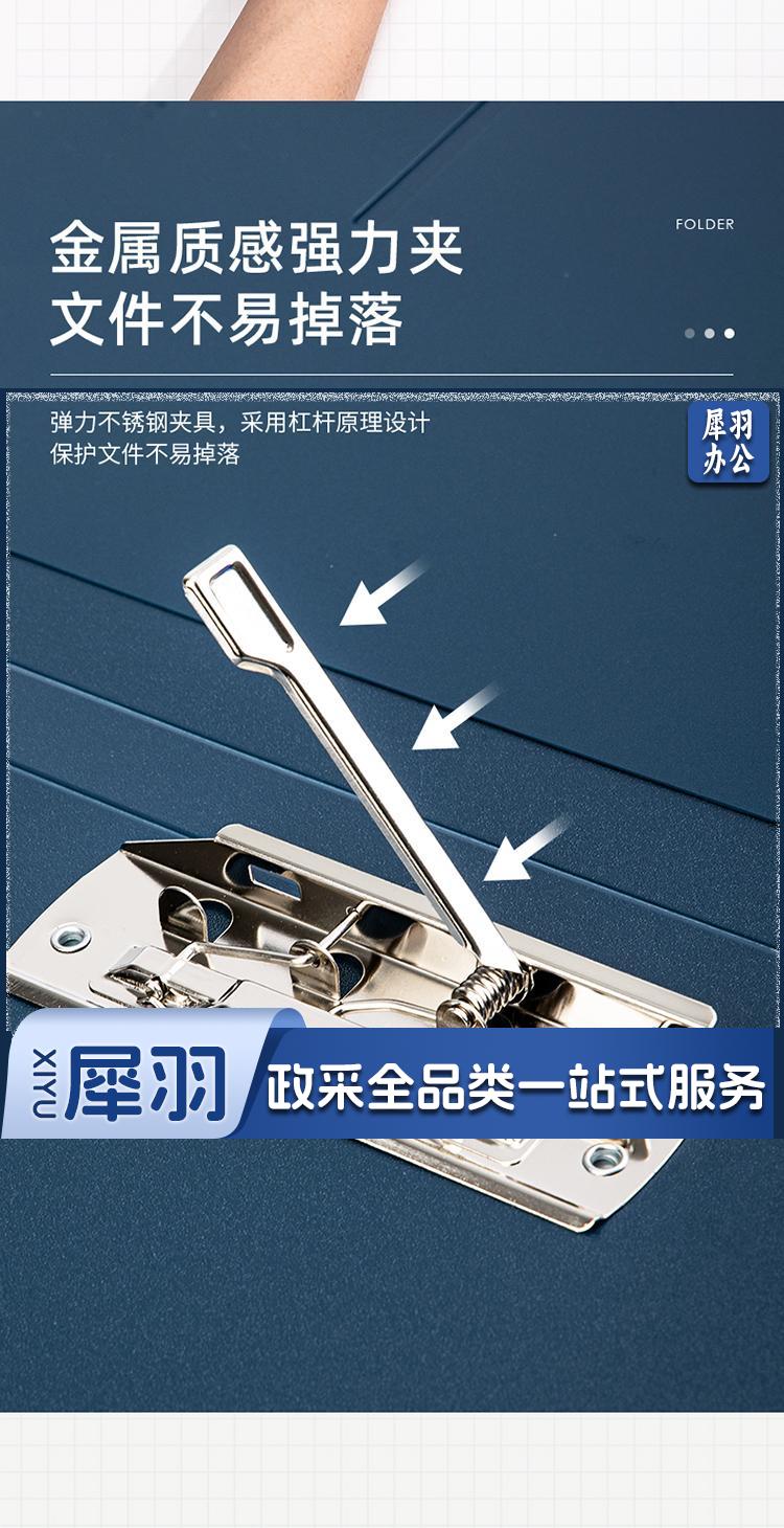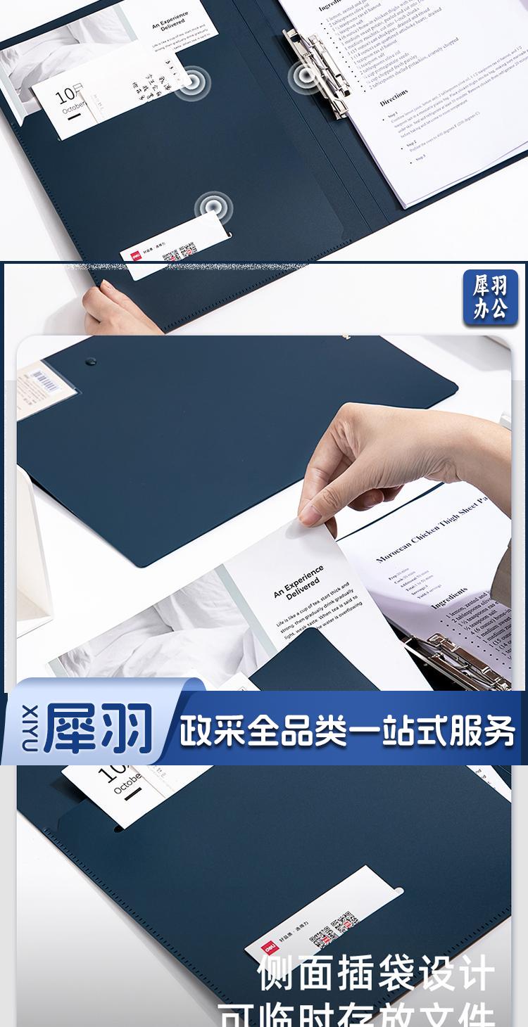 纽赛(NUSIGN)文件夹会议夹 单强力夹加厚资料报告商务板夹文件收纳办公用品 海军蓝NS181