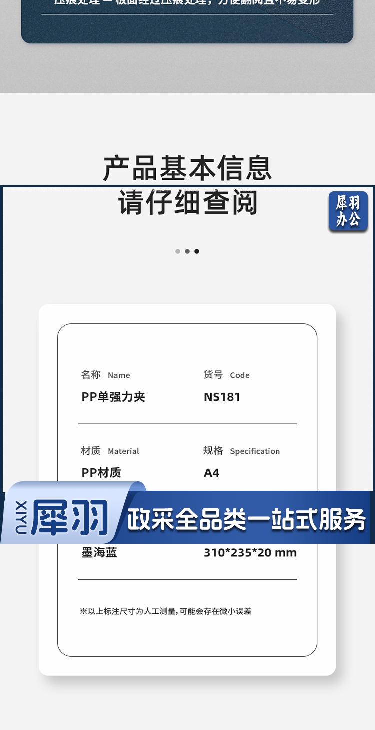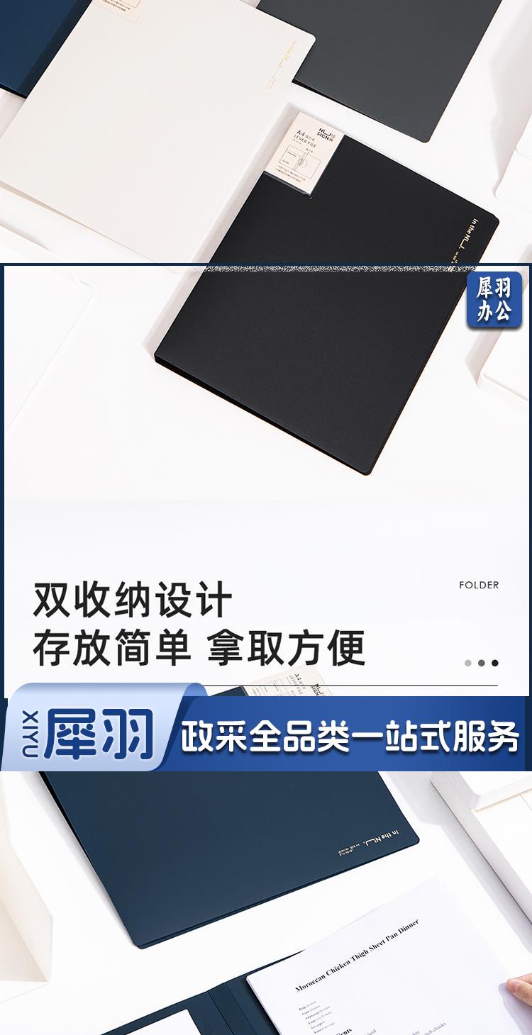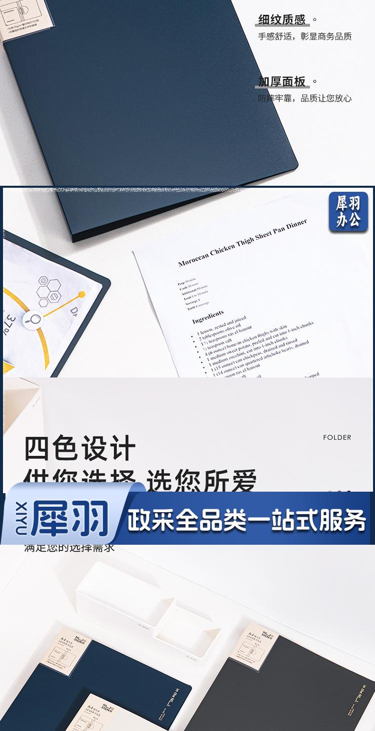 纽赛(NUSIGN)文件夹会议夹 单强力夹加厚资料报告商务板夹文件收纳办公用品 海军蓝NS181