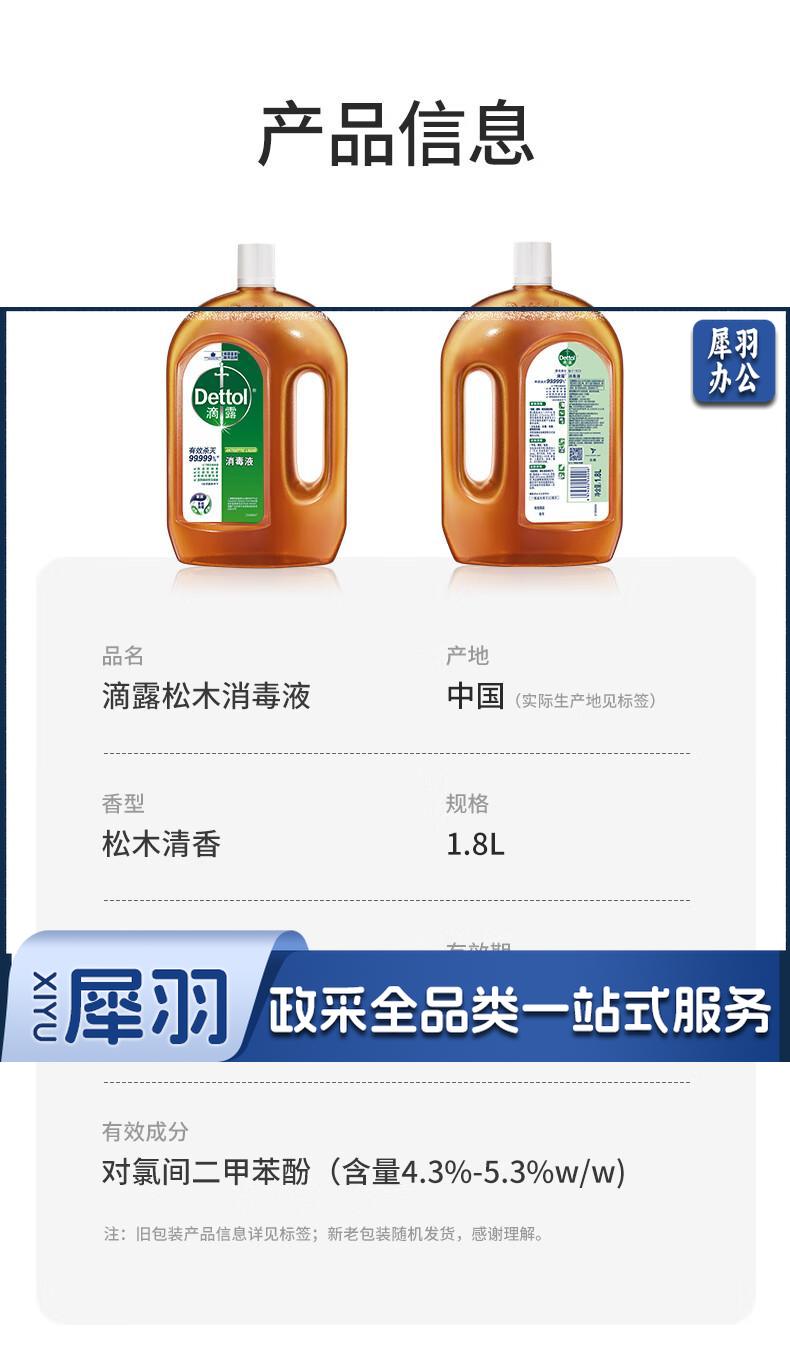 滴露Dettol 消毒液 1.8L 杀菌除螨 家居室内 宠物环境消毒 儿童宝宝内衣 衣物除菌剂