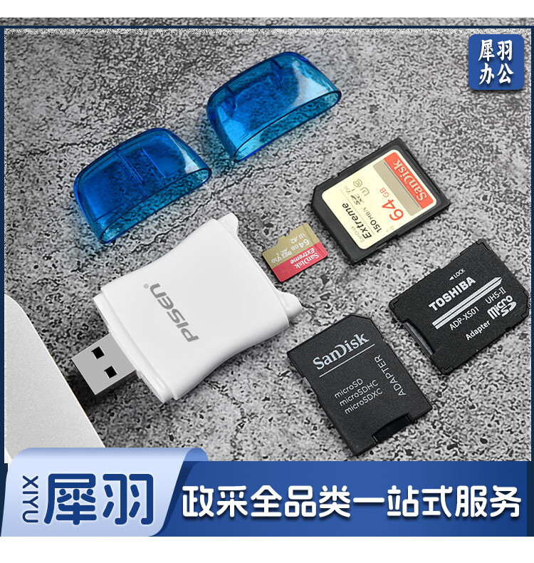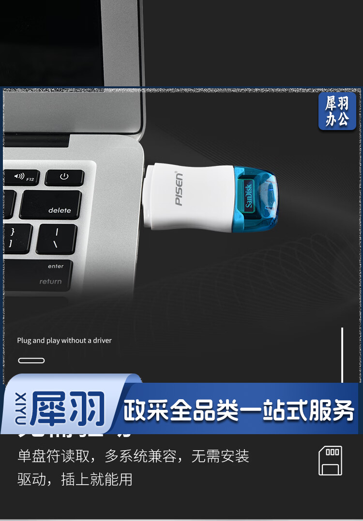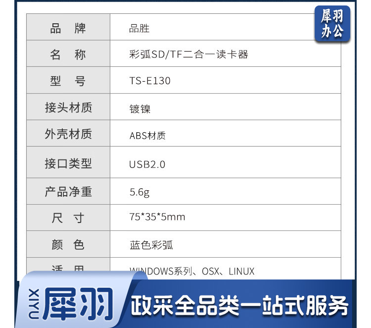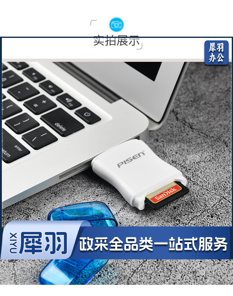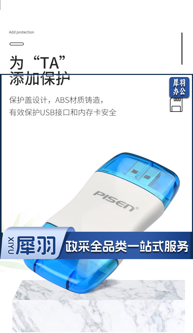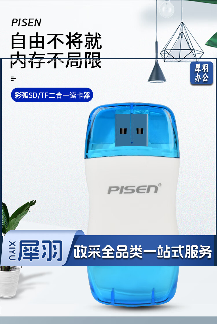 品胜(PISEN) USB2.0单盘符彩弧SD/TF二合一读卡器透明蓝