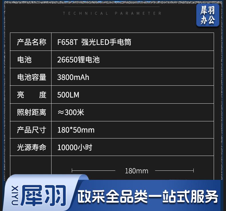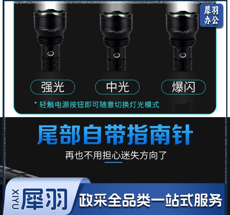 小太阳强光手电筒F658T防水LED锂电带指南针便携式手电物业保安巡逻户外野营 带指南针-F658T默认规格