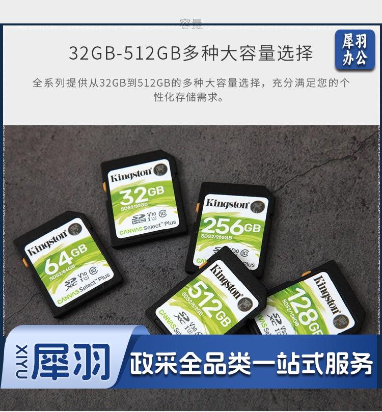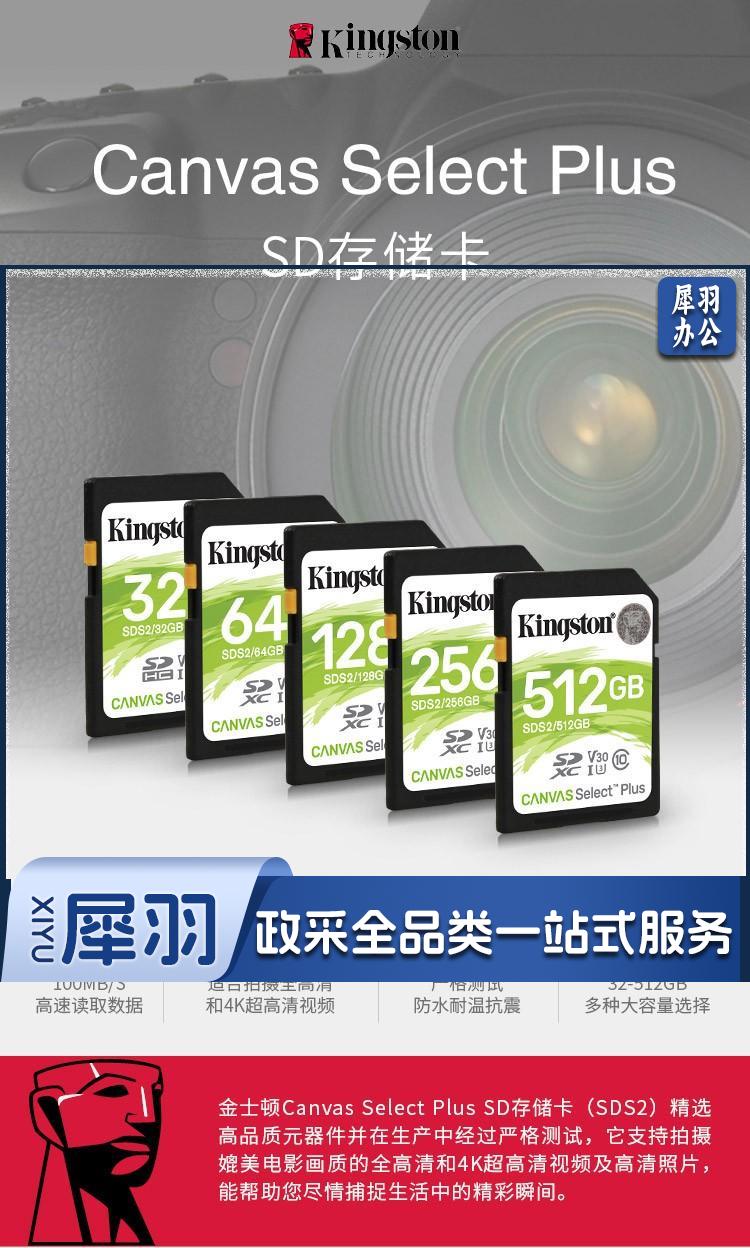 金士顿(Kingston)SD大卡相机内存单反微单相机存储卡 class10 100M/s SDS2 128G