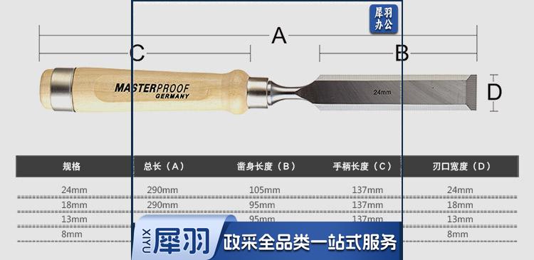 麦思德 (MASTERPROOF) 木工凿套装木工凿子雕刻刀木刻刀扁铲铬钒钢专业级木工工具