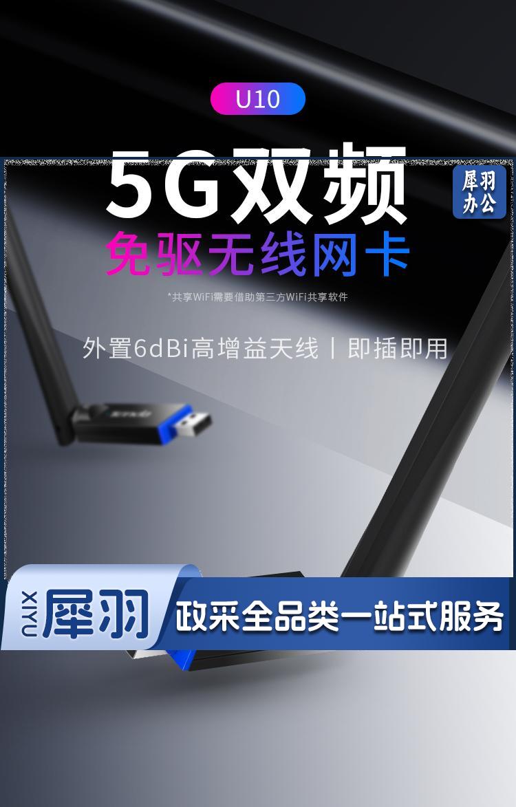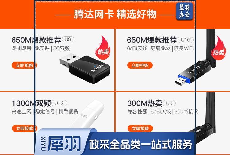 腾达U10 免驱650M USB无线网卡 台式机电脑笔记本通用 5g双频 随身WiFi网络无线接收器 发射器 自营