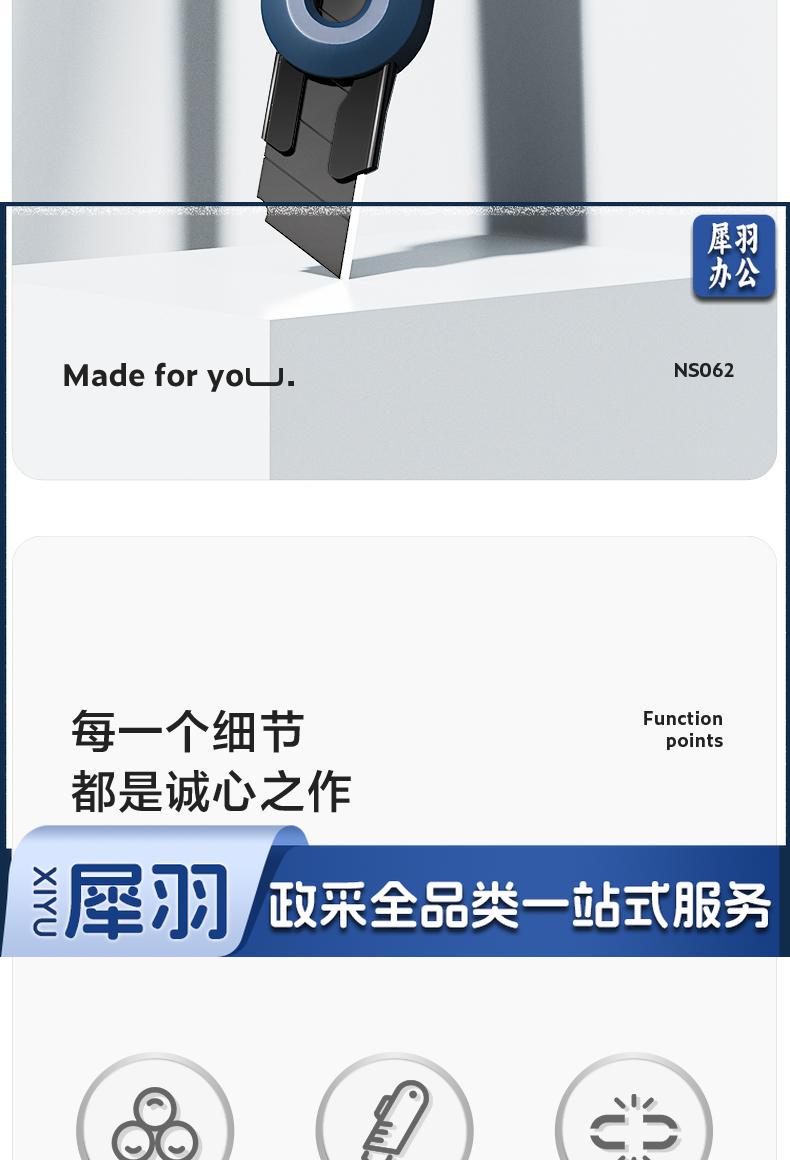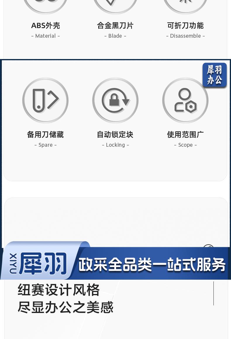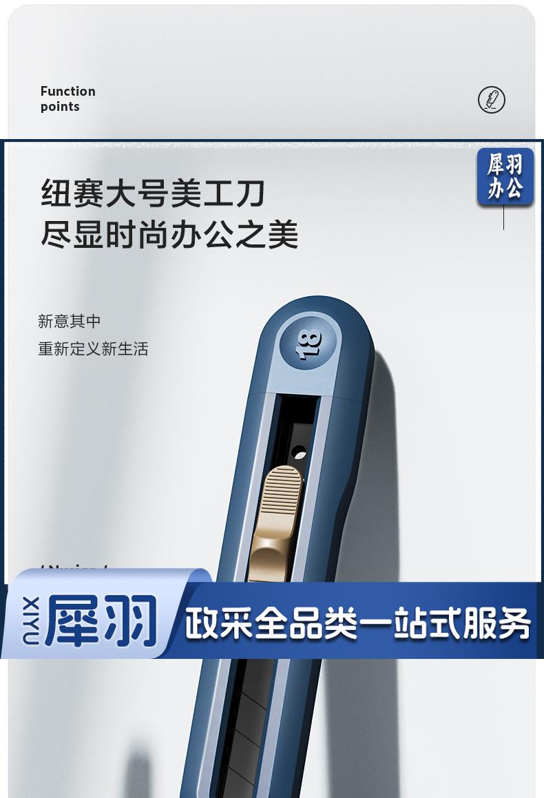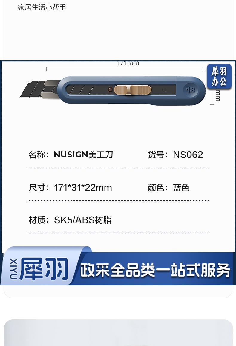 得力纽赛(NUSIGN)大号撞色设计美工刀壁纸刀裁纸刀 办公用品 尾部自带折刀器 蓝色 NS062