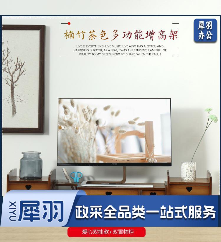 倍方 茶色爱心款置物柜 爱心双抽屉+双置物柜 实木竹制 多功能置物架 办公桌面收纳架 组装置物柜收纳柜