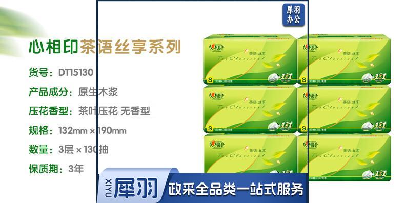 心相印抽纸 茶语丝享系列抽纸3层130抽/包 6包/提 【4提24包】整箱24包抽取式面巾纸餐巾纸巾DT15130-24