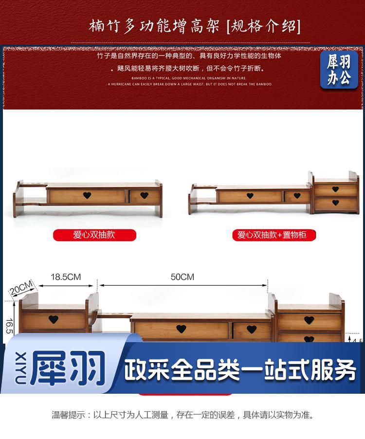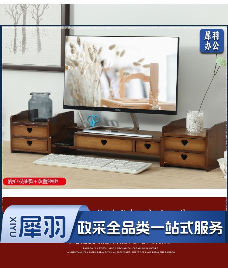 倍方 茶色爱心款置物柜 实木竹制 多功能置物架 可搭配显示器增高架 办公桌面收纳架 组装置物柜收纳柜