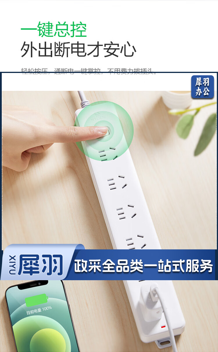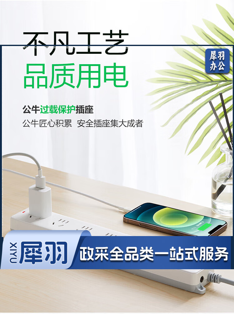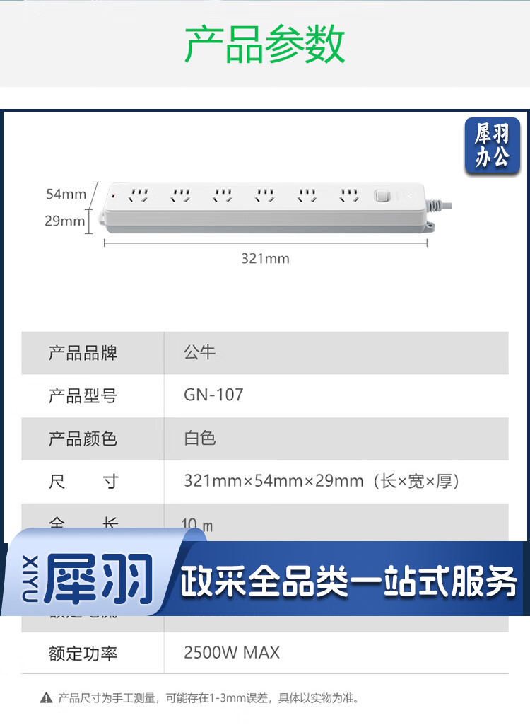 公牛(BULL)GN-107 新国标插座/插线板/插排/排插/接线板/拖线板 6位总控全长10米 超功率保护