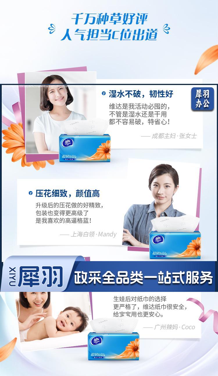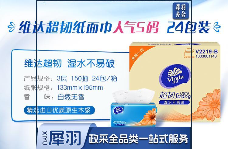 维达(Vinda) 抽纸 超韧3层150抽软抽纸巾*24包(真S码) 整箱销售
