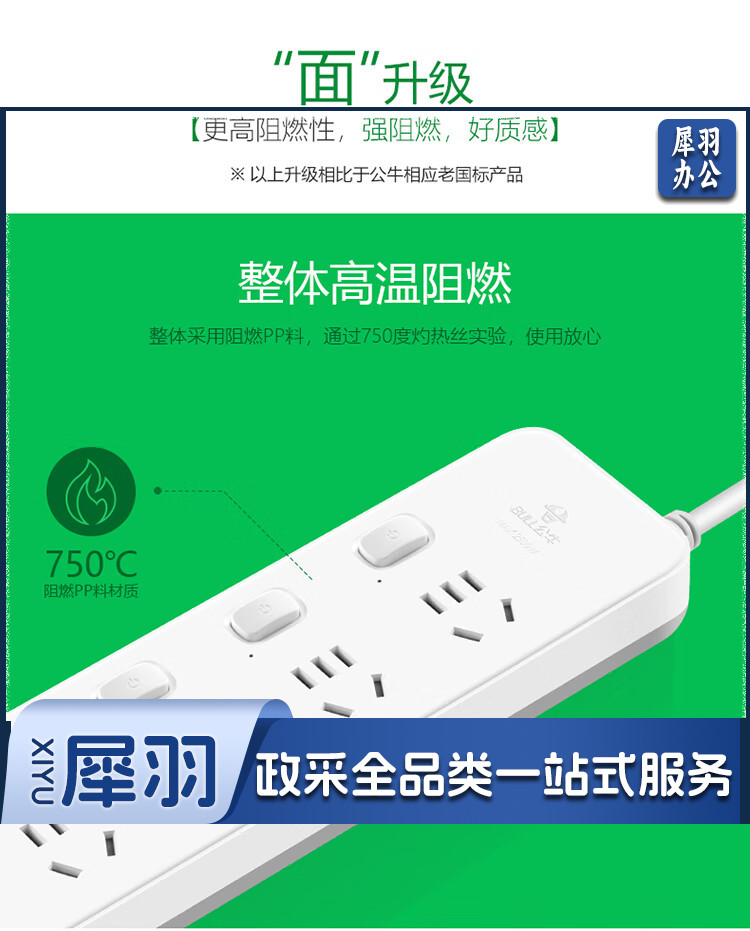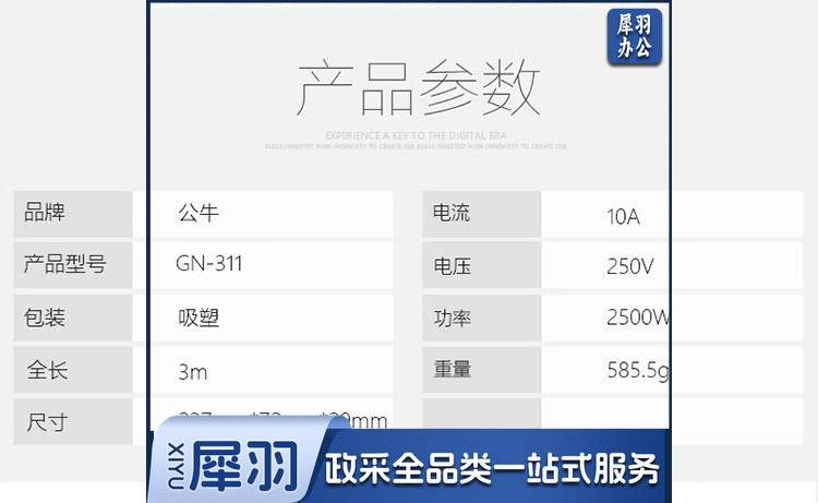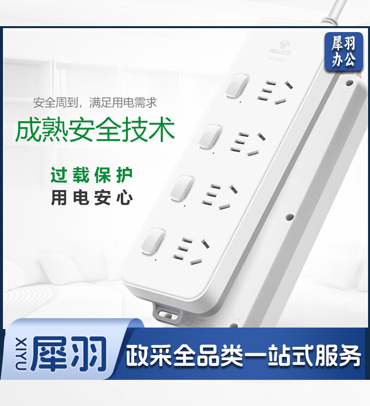 公牛(BULL)超功率保护插座/插线板/插排/排插/接线板/拖线板 4位分控全长3米 GN-311