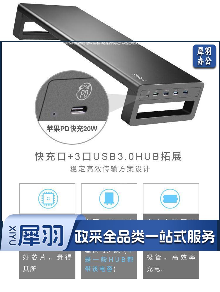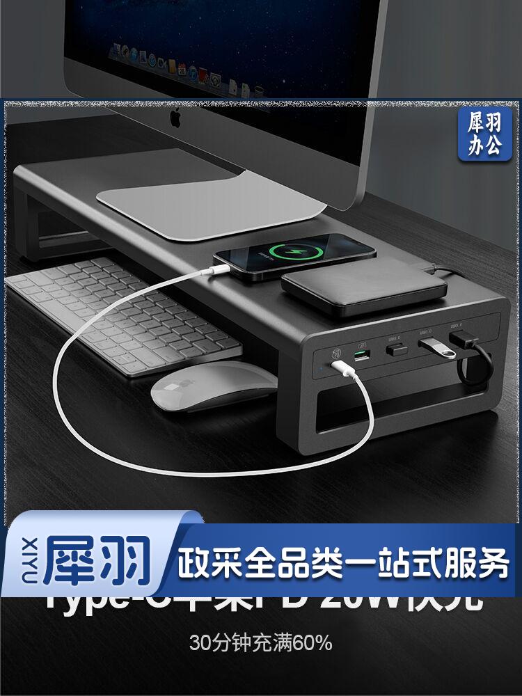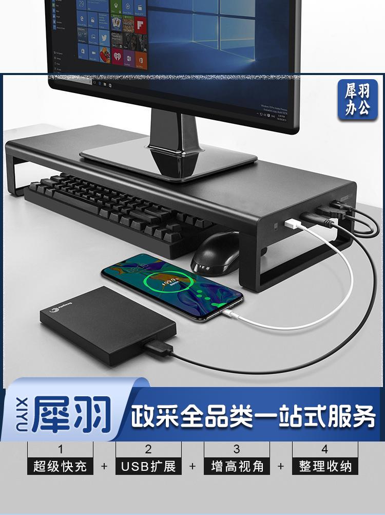 倍方 电脑显示器增高架 超级快充款+3口usb3.0 显示器支架 键盘收纳架 电脑支架 桌面置物架底座托架