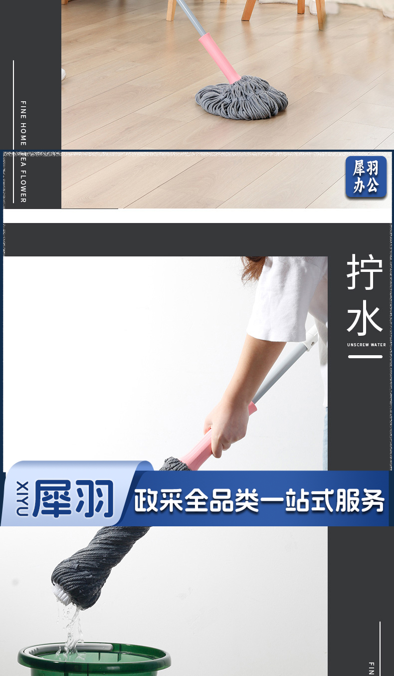 茶花 拖把免手洗墩布旋转吸水拧水懒人拖把拖地神器 粉色