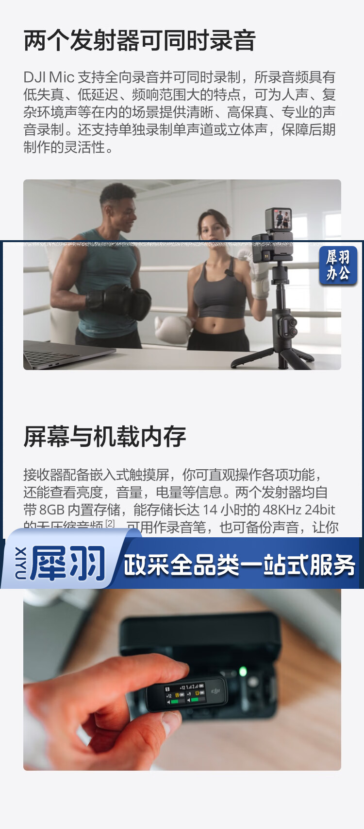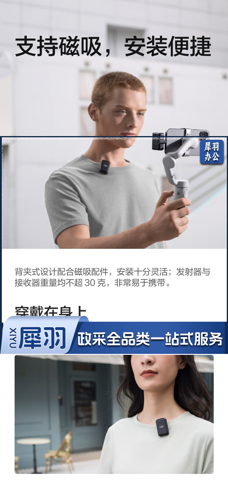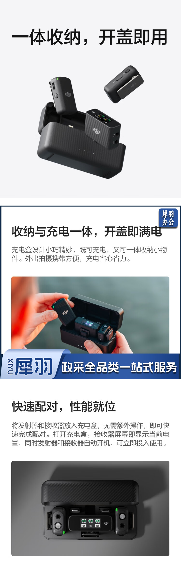 大疆 DJI Mic 无线麦克风 一拖二无线领夹麦克风 手机采访vlog直播录音收音麦
