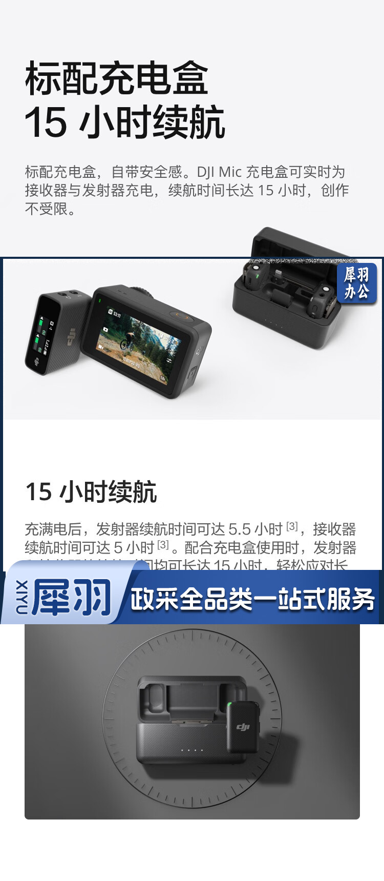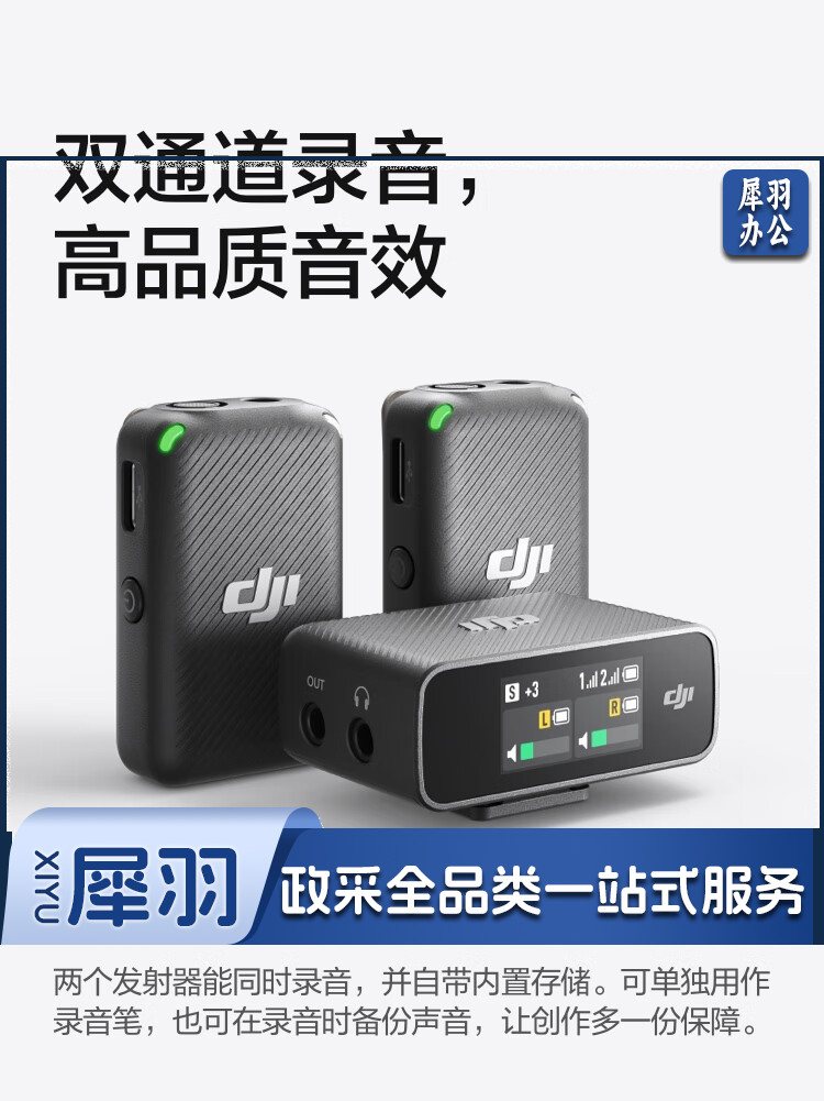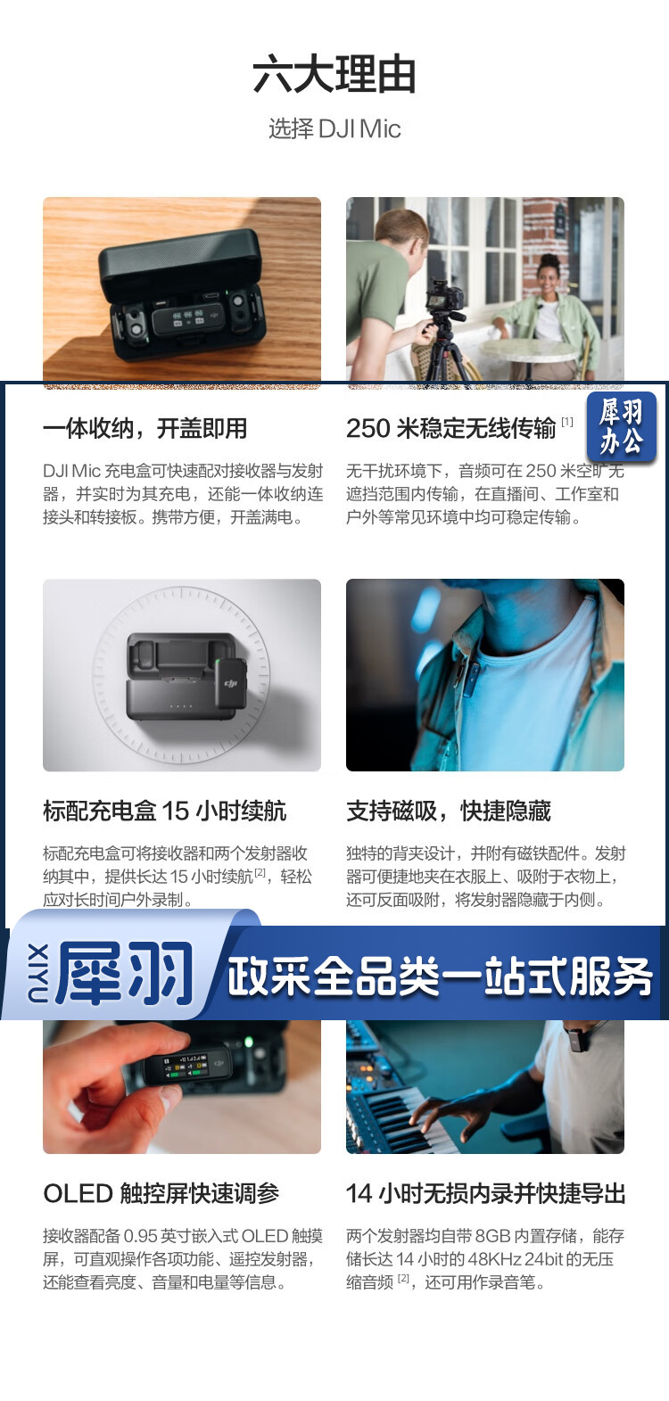 大疆 DJI Mic 无线麦克风 一拖二无线领夹麦克风 手机采访vlog直播录音收音麦