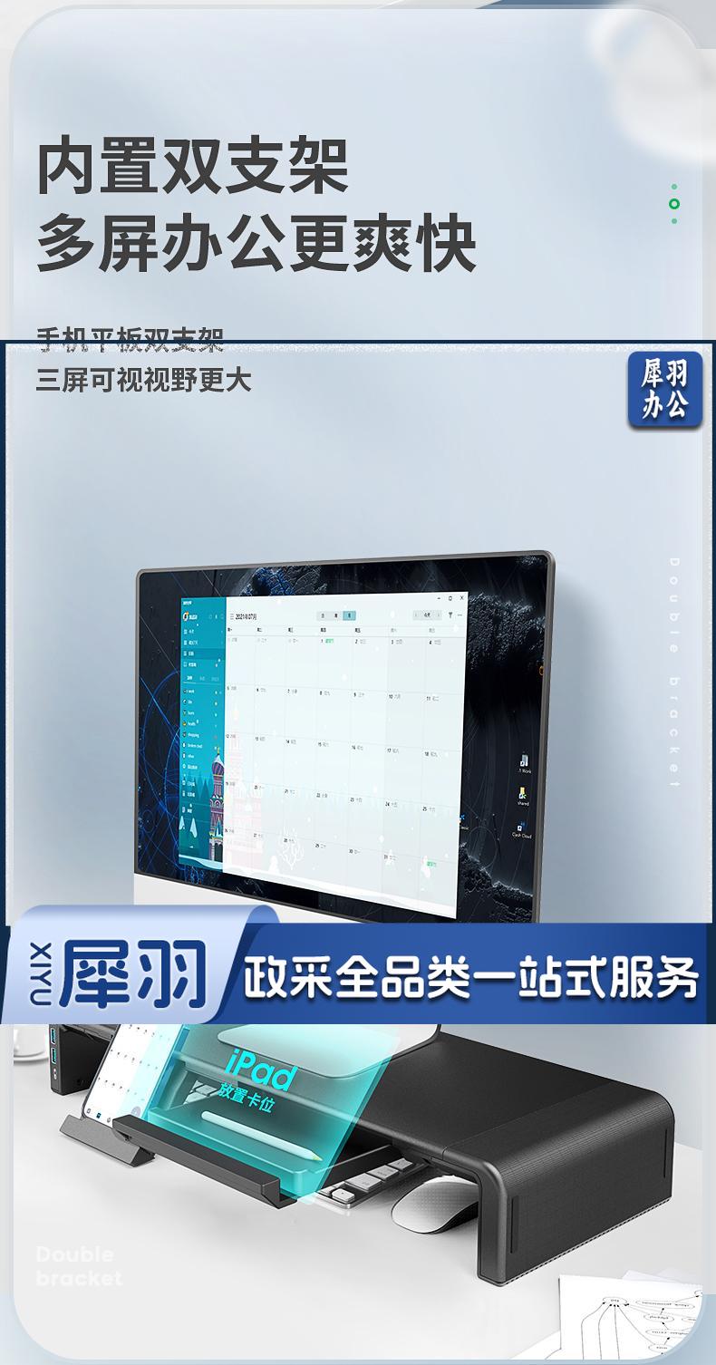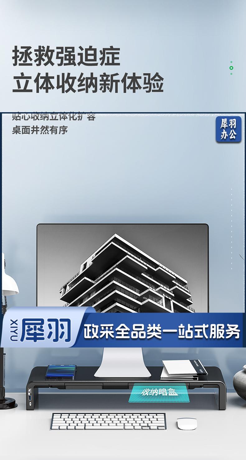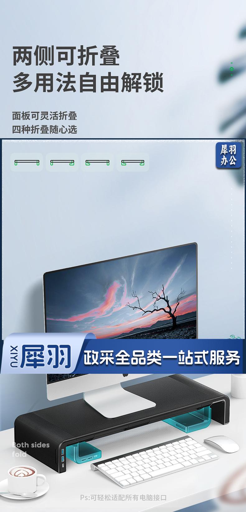 绿巨能(llano)显示器增高架 台式电脑托架 笔记本散热支架 桌面可调节折叠置物架底座 键盘收纳架带HUB扩展
