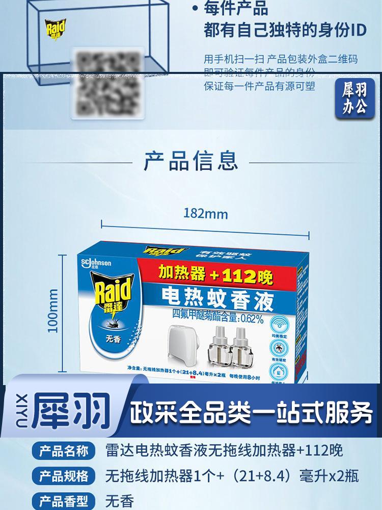 雷达(Raid) 电蚊香液 2瓶装 112晚+无线加热器 无香型 驱蚊液 防蚊液 驱蚊水 驱蚊器