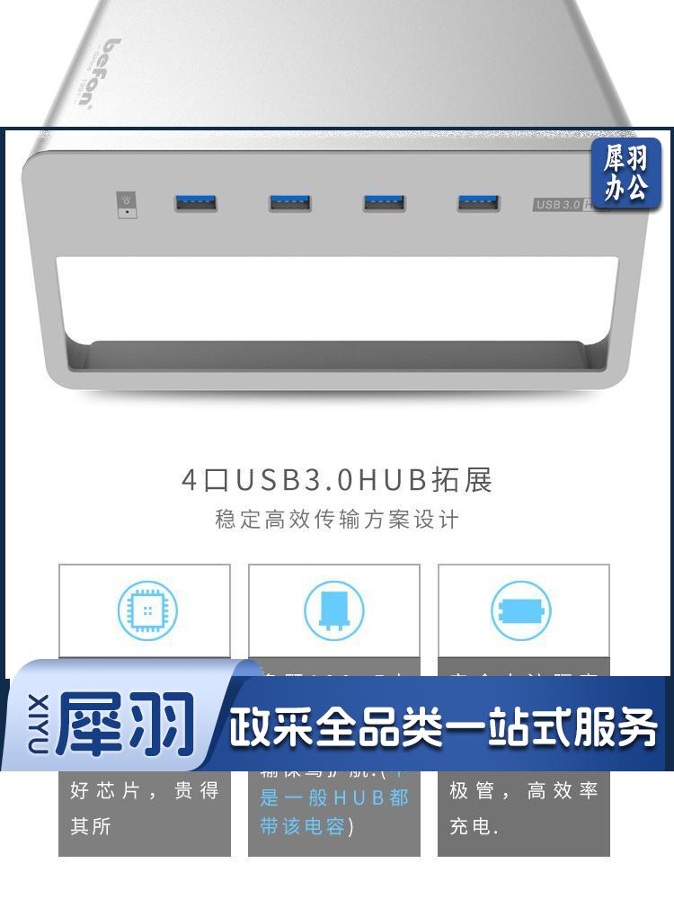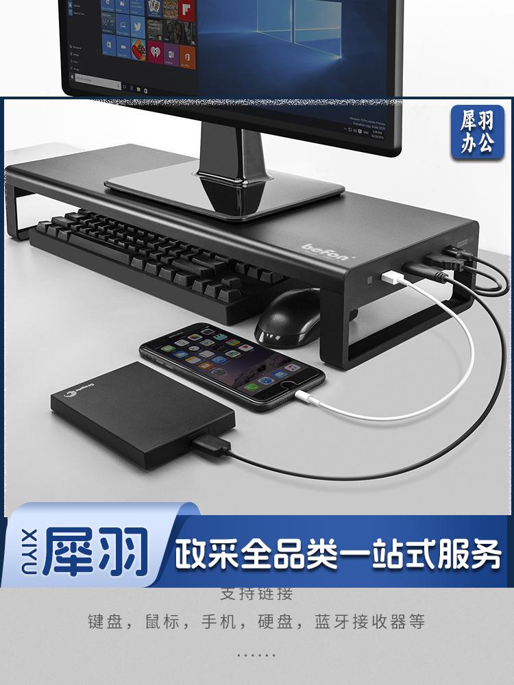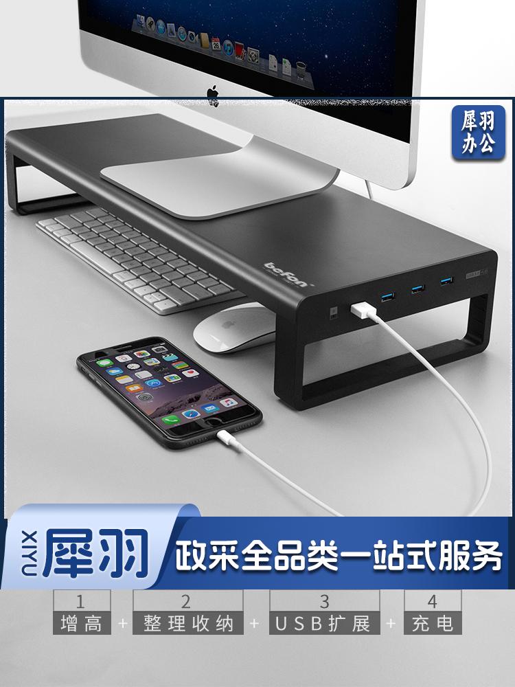 倍方 电脑显示器增高架 4口usb3.0高配款 显示器支架 键盘收纳架 笔记本支架 电脑支架 桌面置物架底座托架