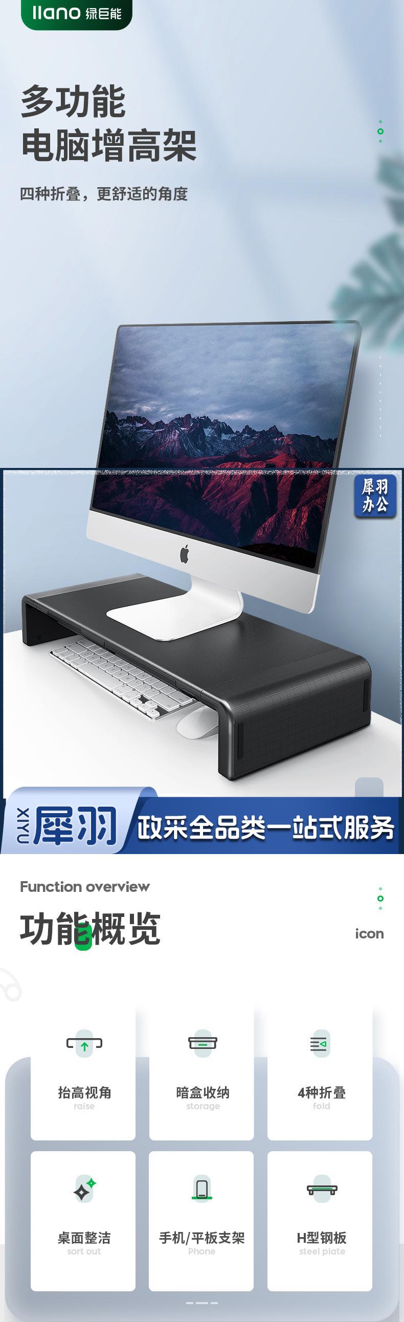 绿巨能(llano)显示器增高架 笔记本支架 多功能收纳置物架 桌面台式电脑屏垫高可调节带抽屉底座 散热架子