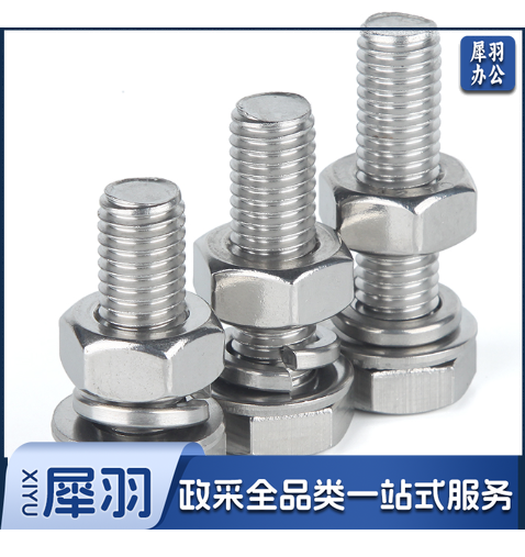 304不锈钢外六角螺丝螺栓螺母平垫弹垫套装M16*65mm