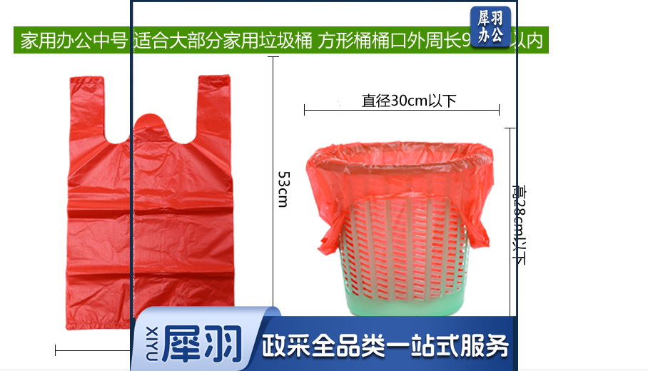 加厚手提背心式垃圾袋红色33cm*53cm家用中号桶用清洁袋(定制尺寸20000起订)