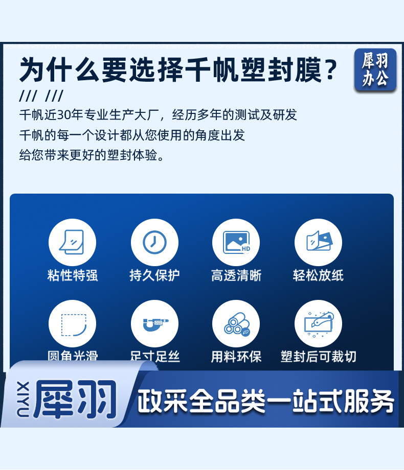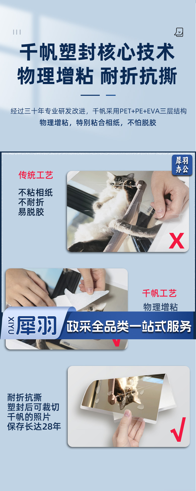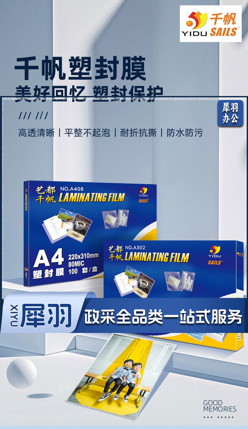 千帆(SAILS)塑封膜a4 8丝照片过塑膜 相片过胶膜 塑封机高透护卡膜塑封纸过塑纸封塑纸220x310MMx8C 100张