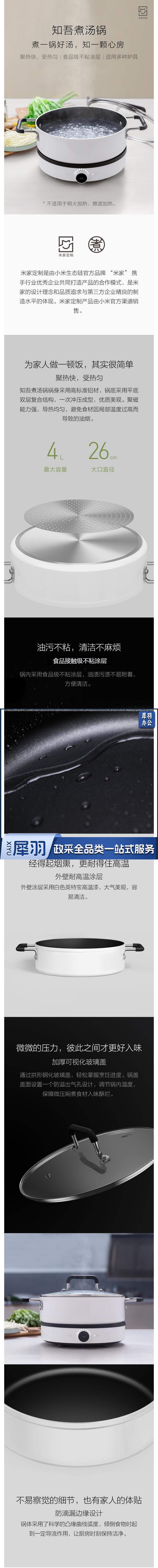 米家 小米知吾煮汤锅4L 食品级不黏涂层 耐腐蚀易清洗 26cm大口径
