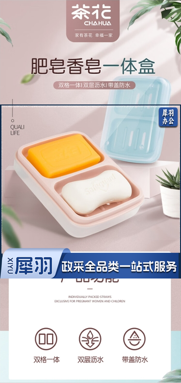 茶花 肥皂盒 皂碟肥皂架子香皂架 双层沥水香皂盒子 双格