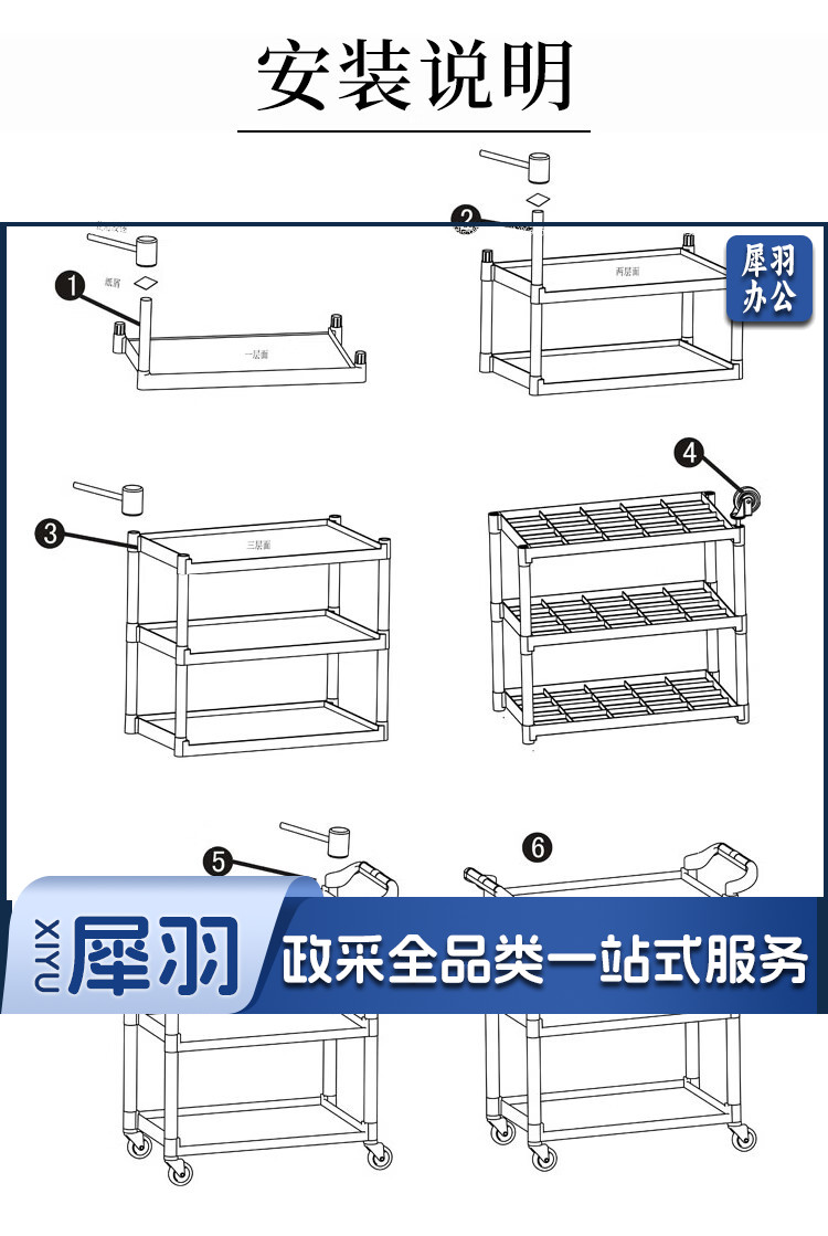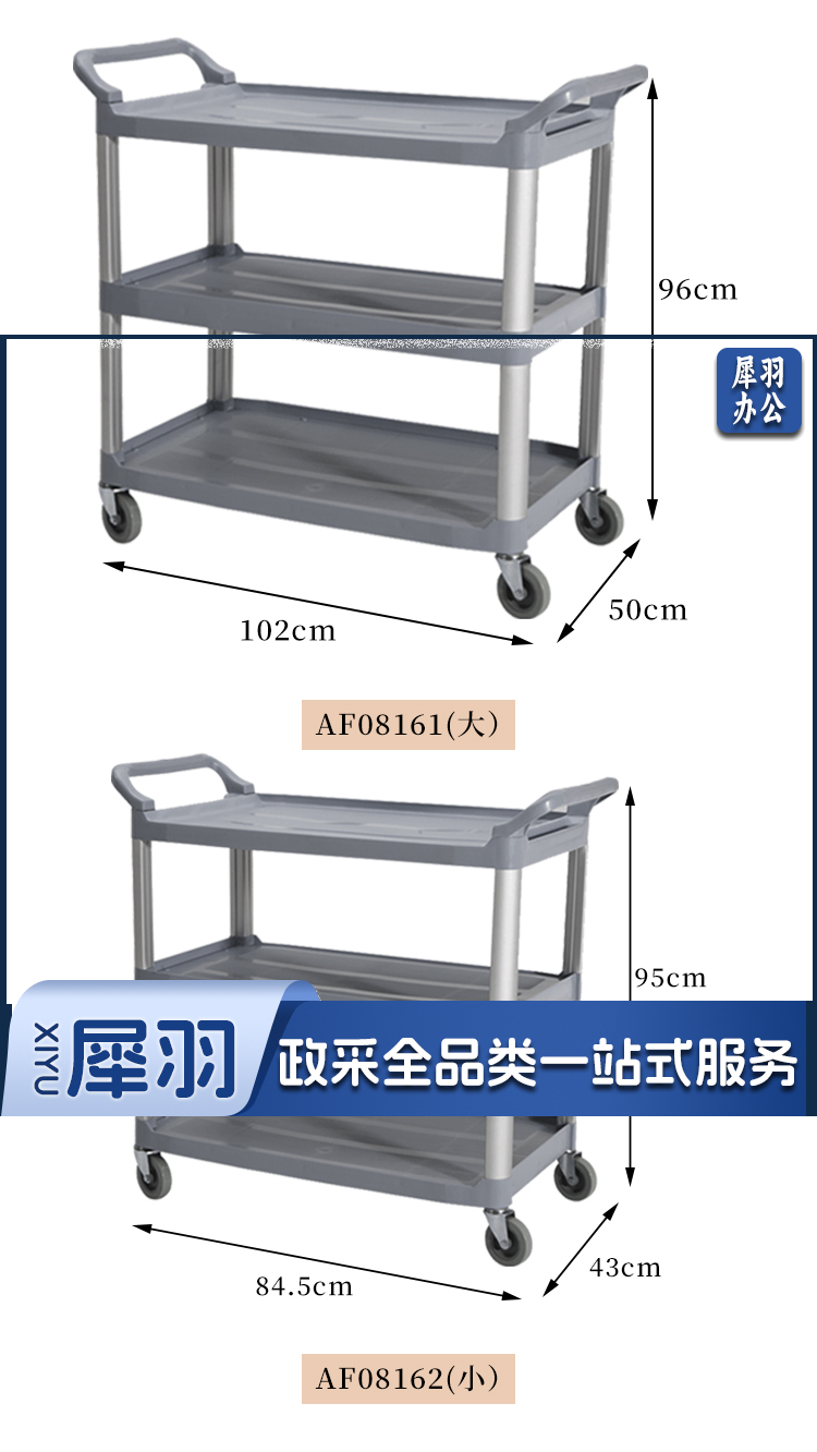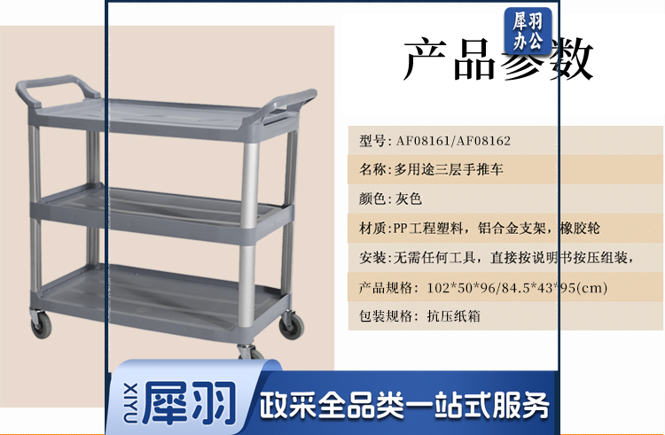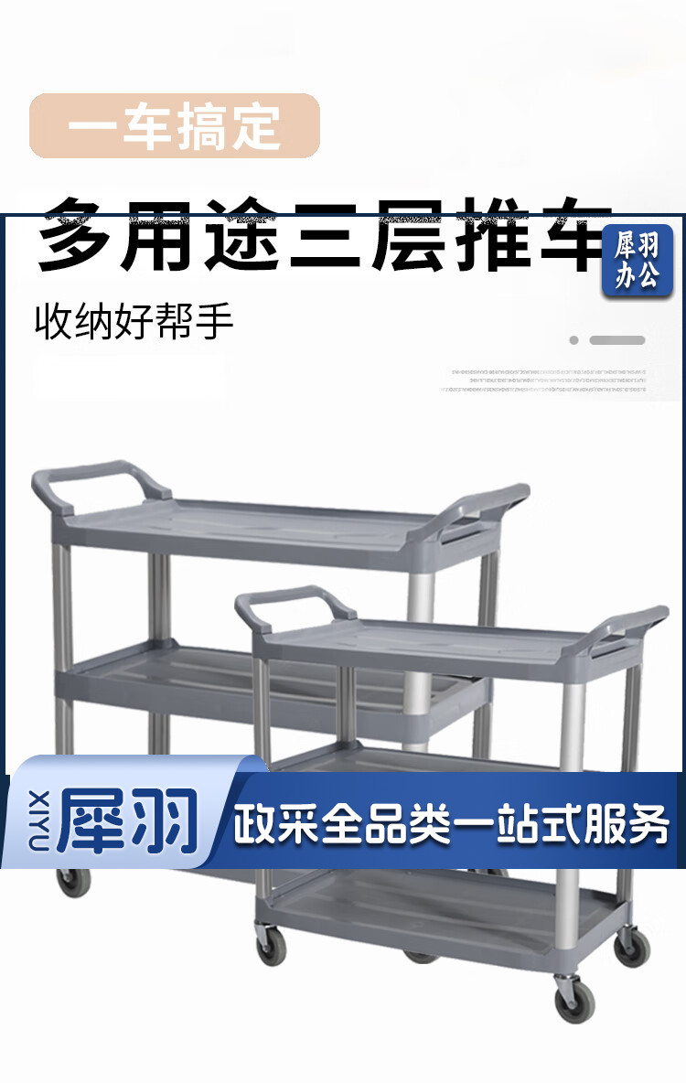 白云清洁 AF08162 酒店手推车清洁车收餐车小号多功能三层推车