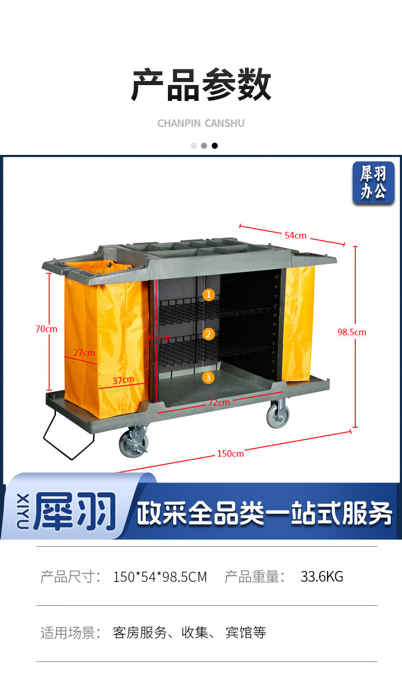 白云清洁 AF08159 布草车酒店客房清洁车手推车 小号
