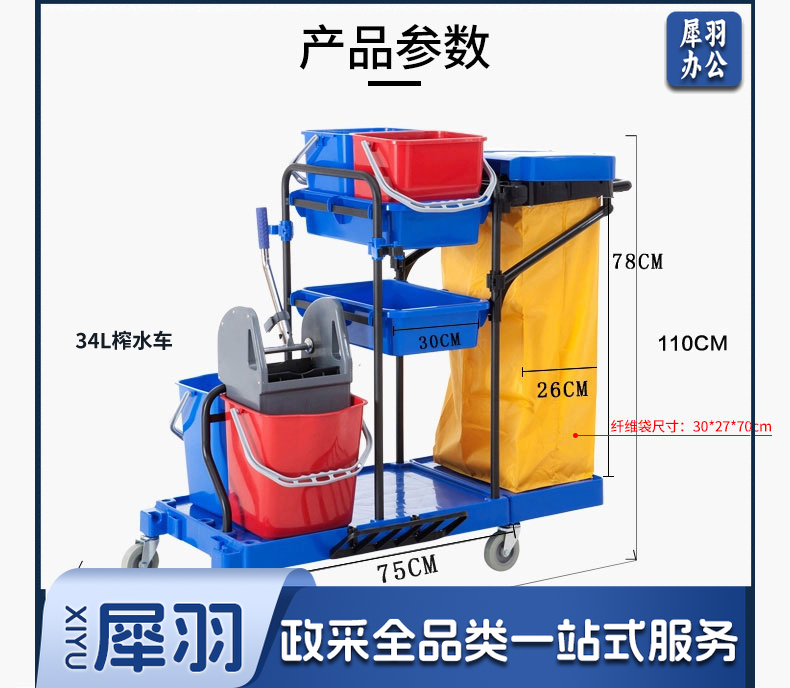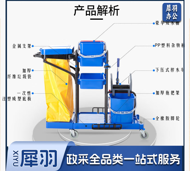 白云清洁 AF08173 清洁手推车酒店宾馆服务车物业保洁车多功能卫生车