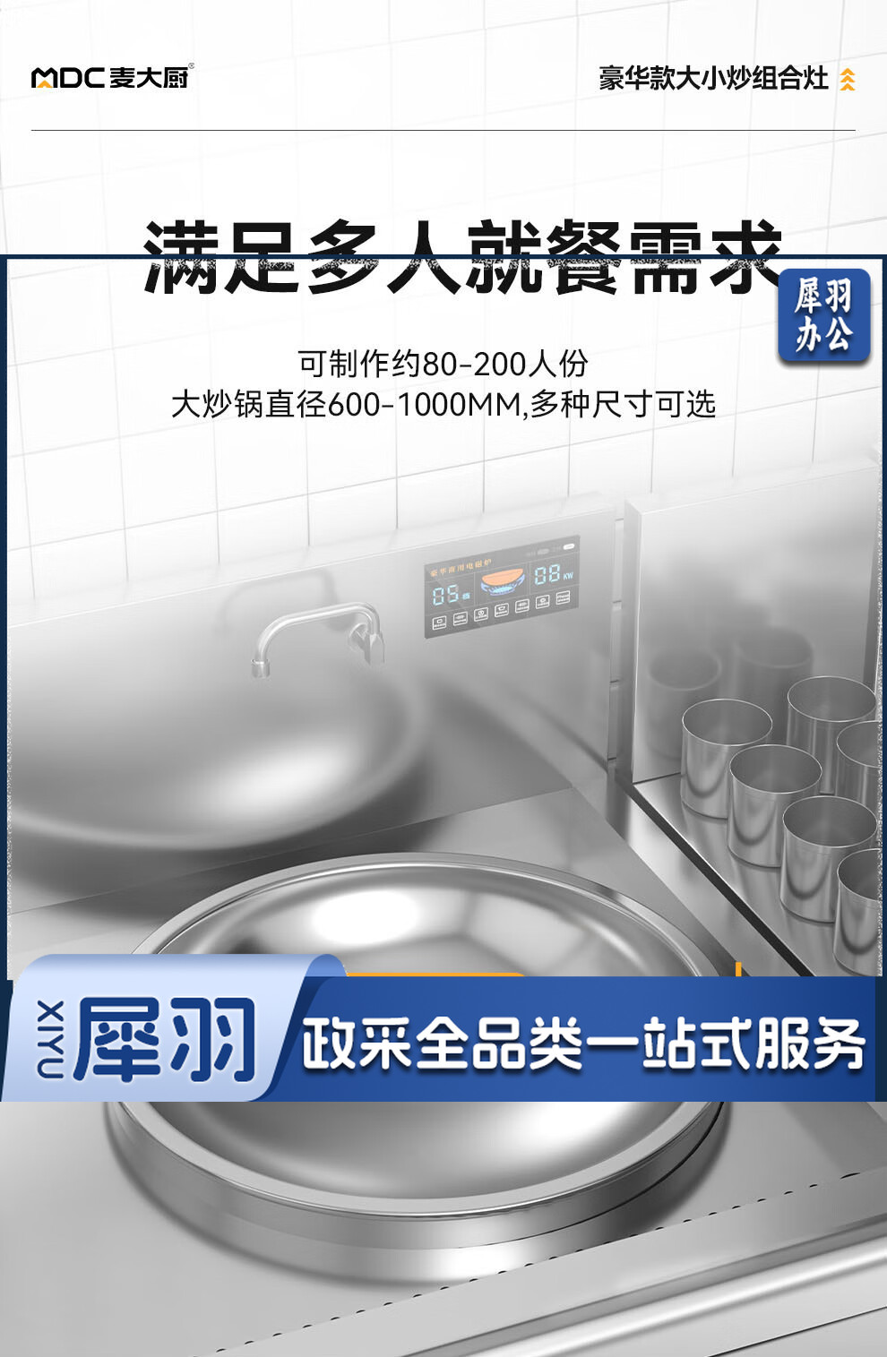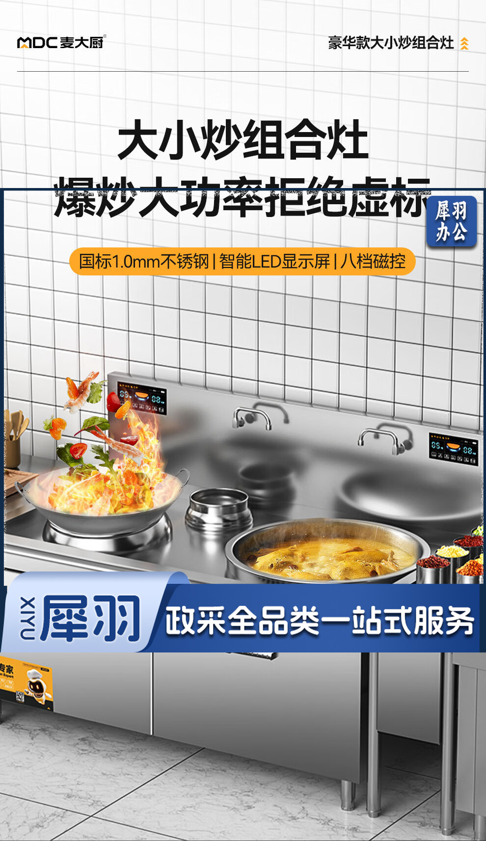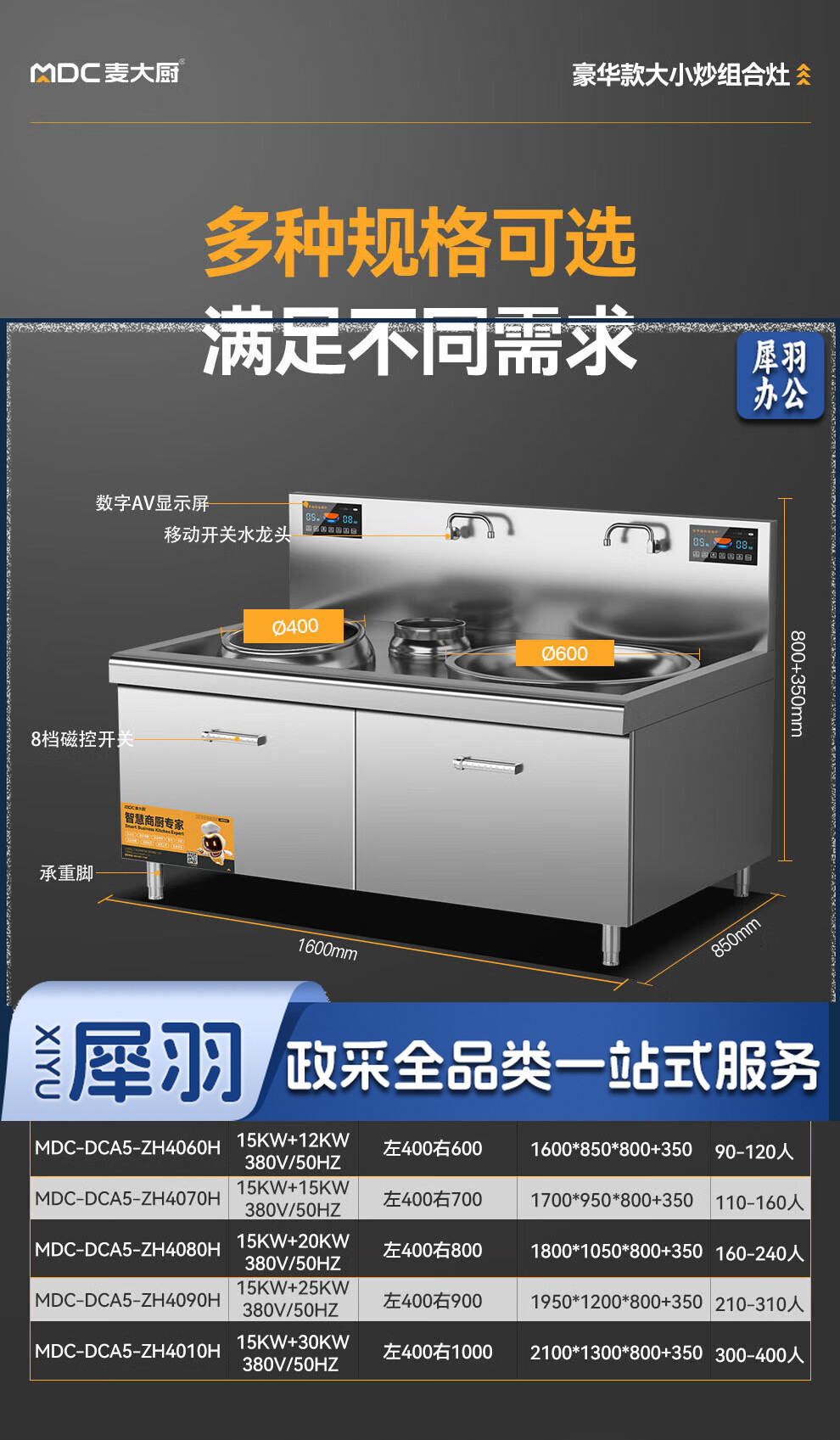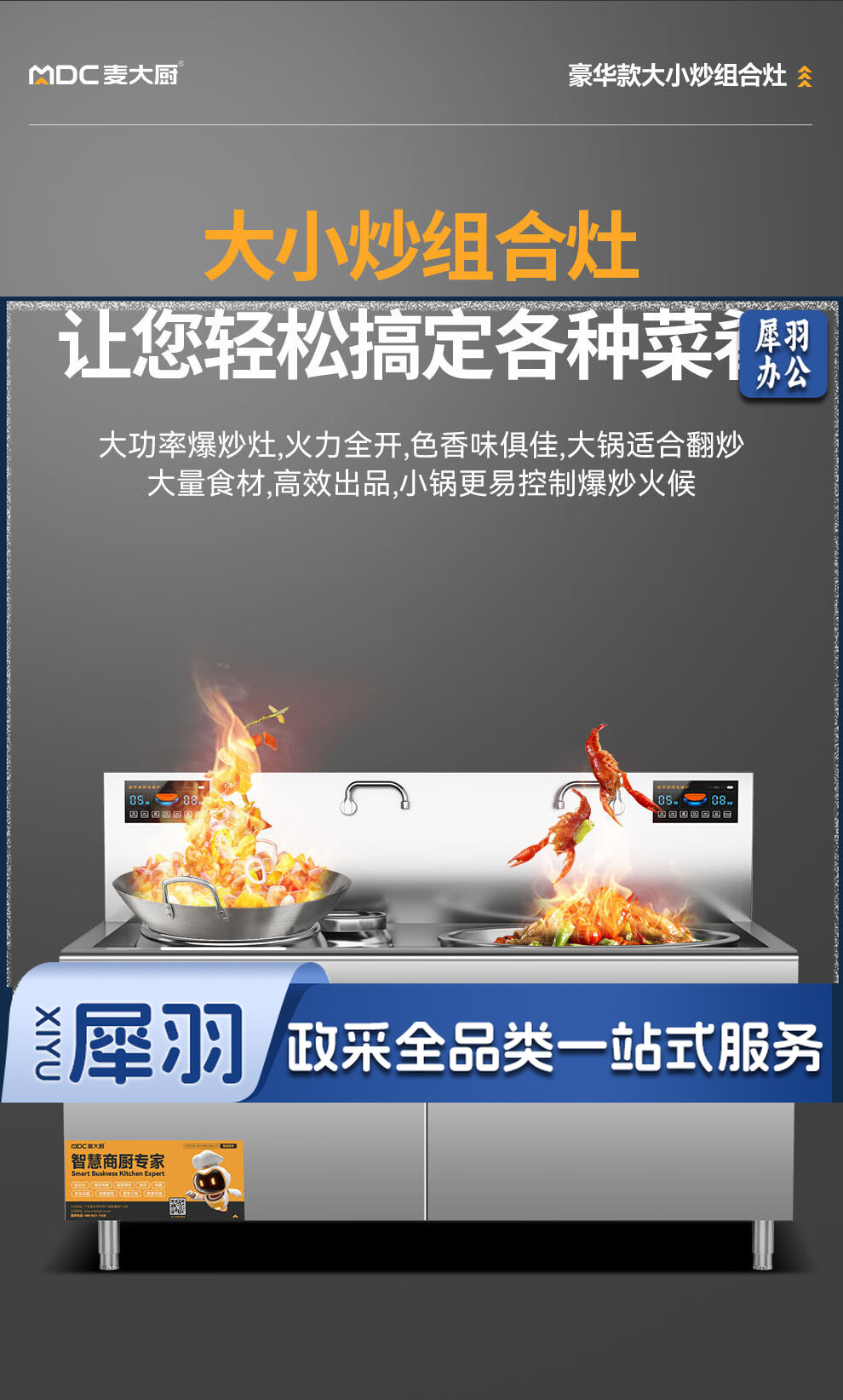 麦大厨 豪华款 380V 左15KW右12KW 左400右600大小组合炉
