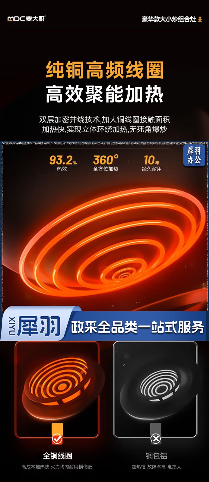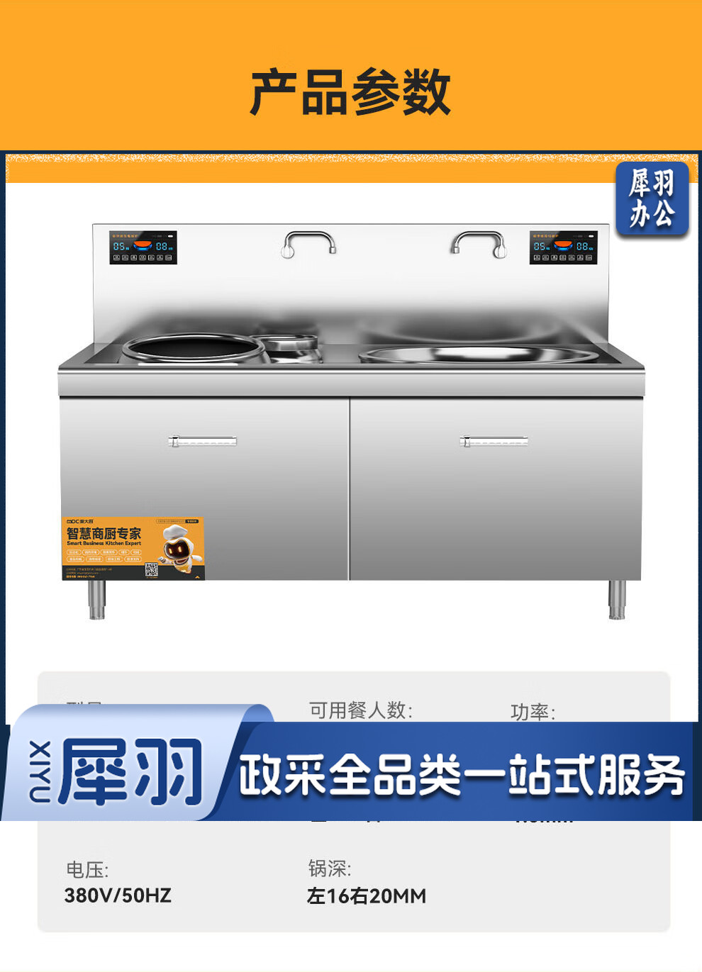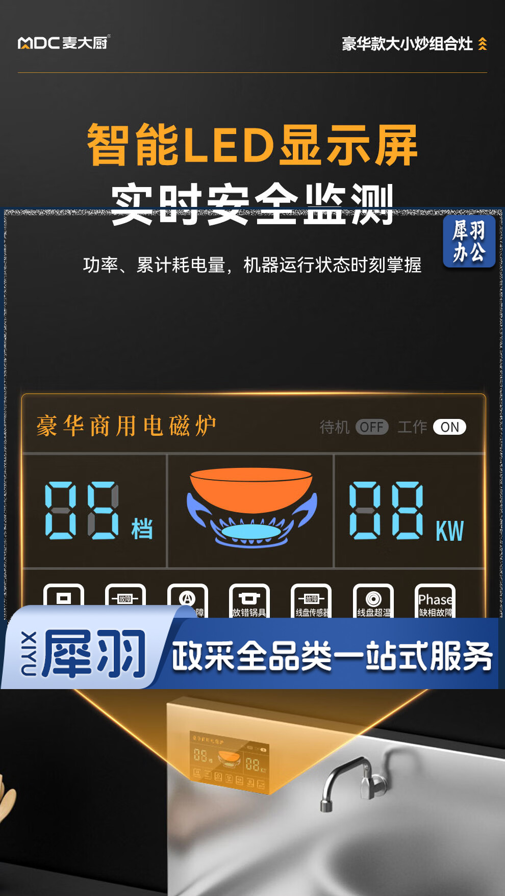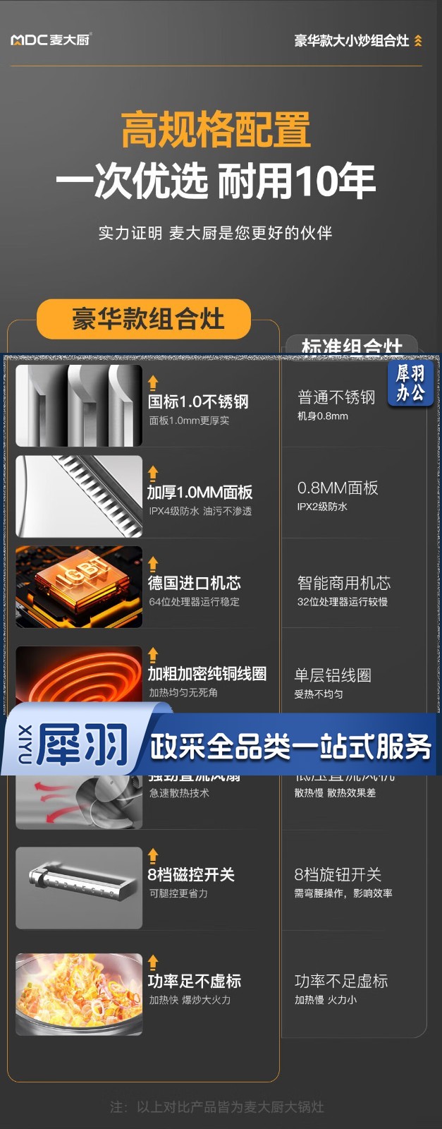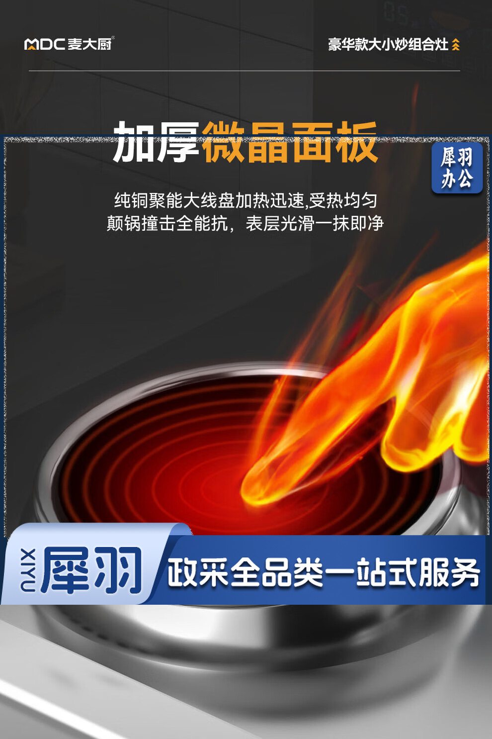 麦大厨 豪华款 380V 左15KW右12KW 左400右600大小组合炉