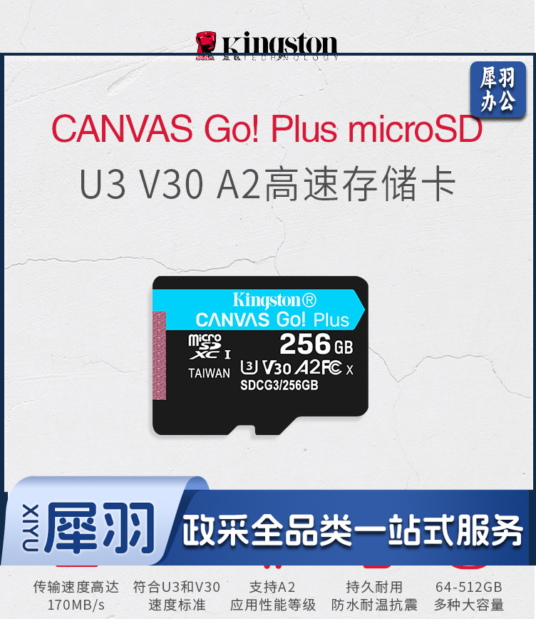金士顿(Kingston)256GB U3 V30 A2 4K 极速版 switch内存卡 TF(Micro SD)存储卡 读速 170MB/s 写速90MB/s