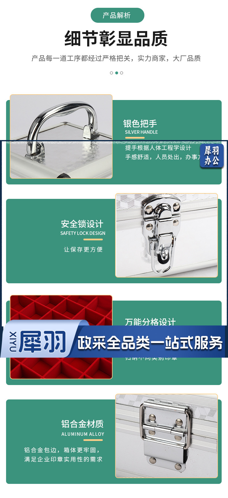 大号公章盒子收纳盒铝合金手提多功能财务印鉴章印章箱印章收纳盒印章盒收纳印章箱 铝合金财务印章箱(八格)