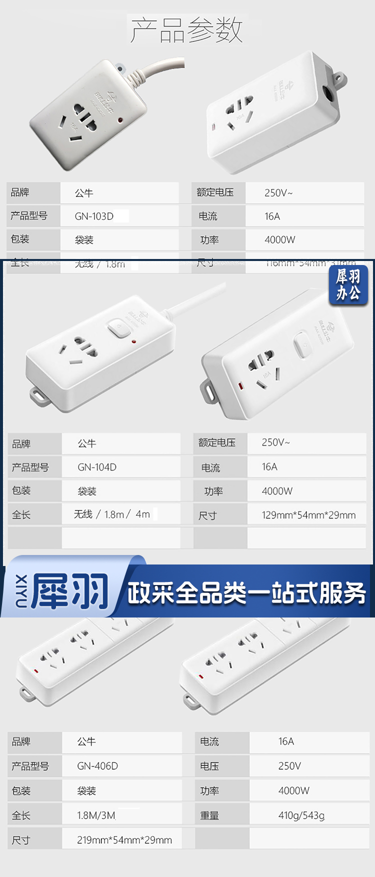 公牛 GN-104D 1位3米 插座 (单位:个)